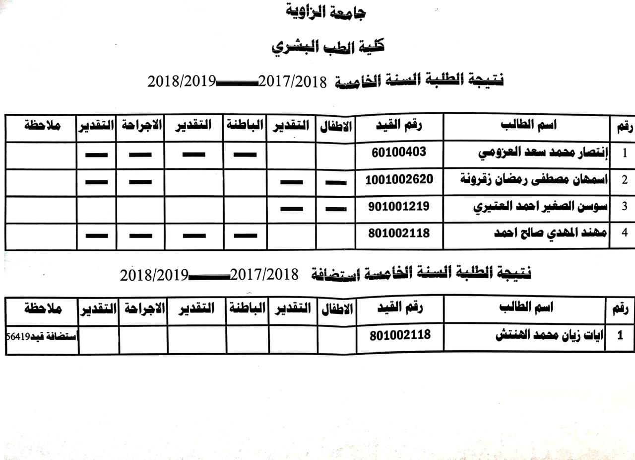يطلب من طلبة السنة الخامسة المرفقة اسماؤهم بهذا الإعلان ضرورة مراجعة ادارة الكلية في أقرب وقت ممكن .