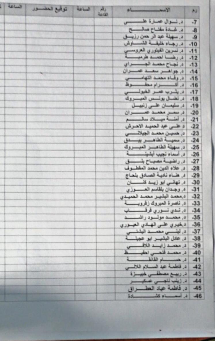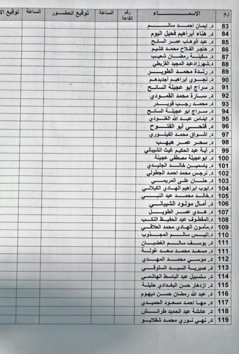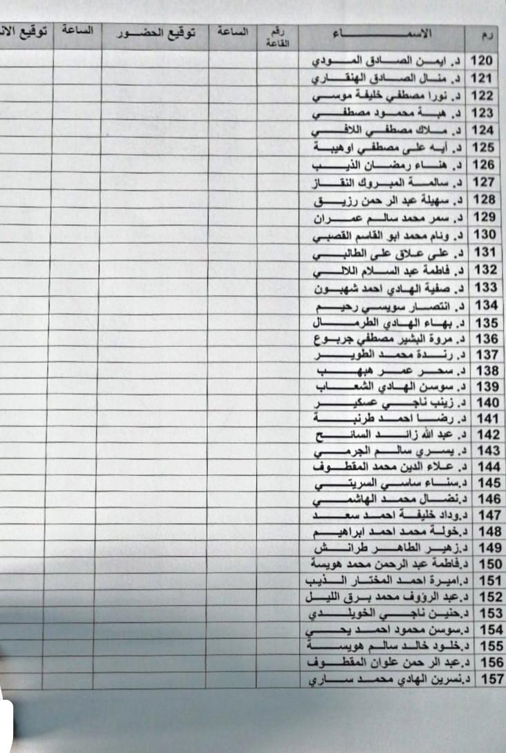 أسماء المكلفين بمراقبة امتحان الدور الأول في مادة طب العيون للسنة الرابعة الدفعة 18,17وذلك يوم الأحد الموافق 11-10-2020 الساعة 8:00 صباحا.