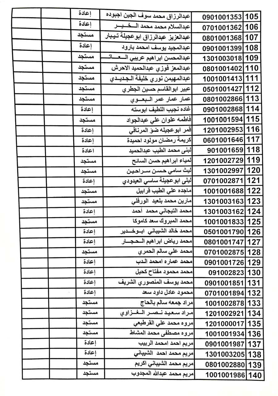 تنويه: يطلب من جميع الطلبة الالتزام بدخول الامتحان باليوم المحدد له في القوائم ويمنع من دخول الامتحان في حال التغيب عن اليوم المحدد له.