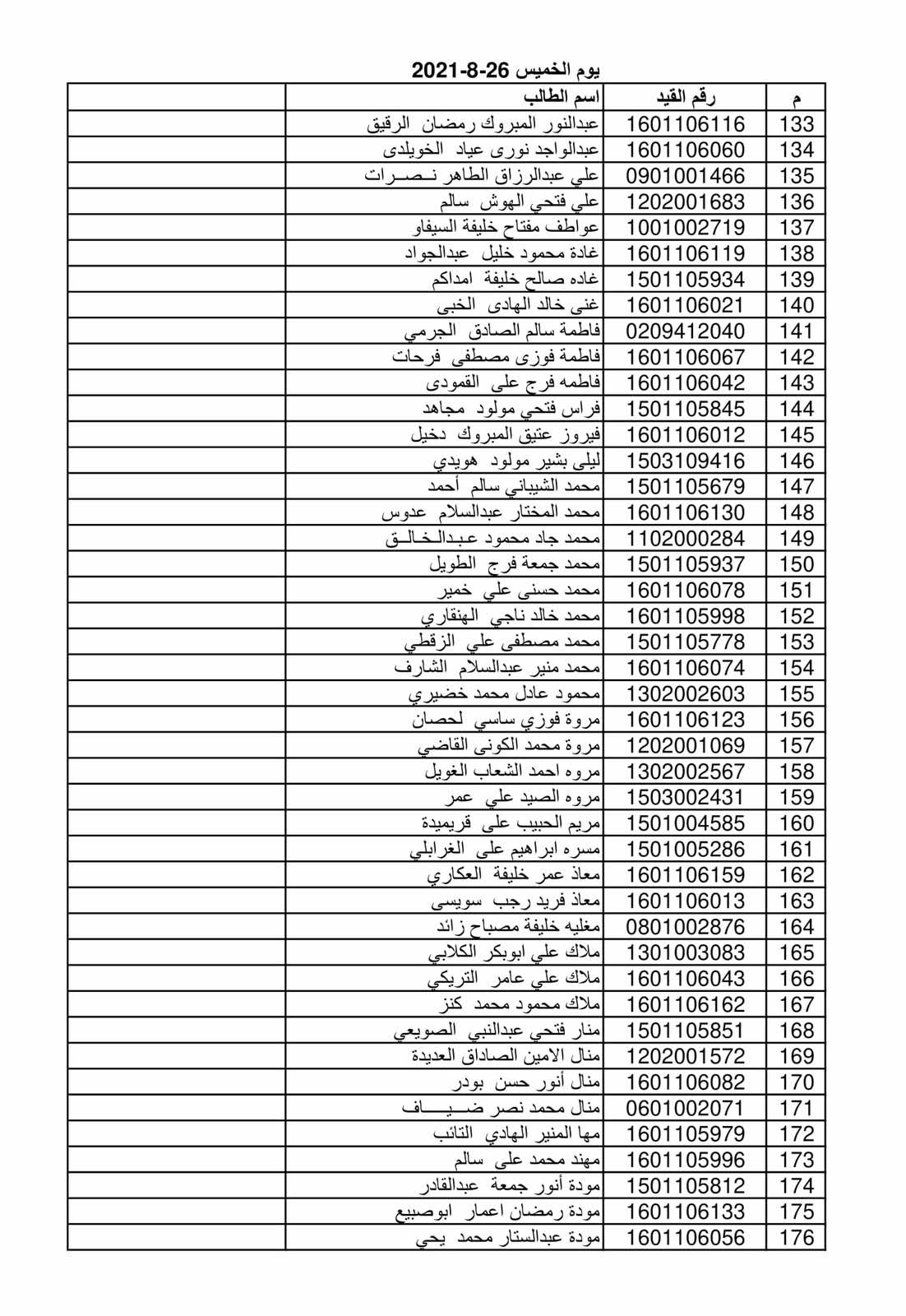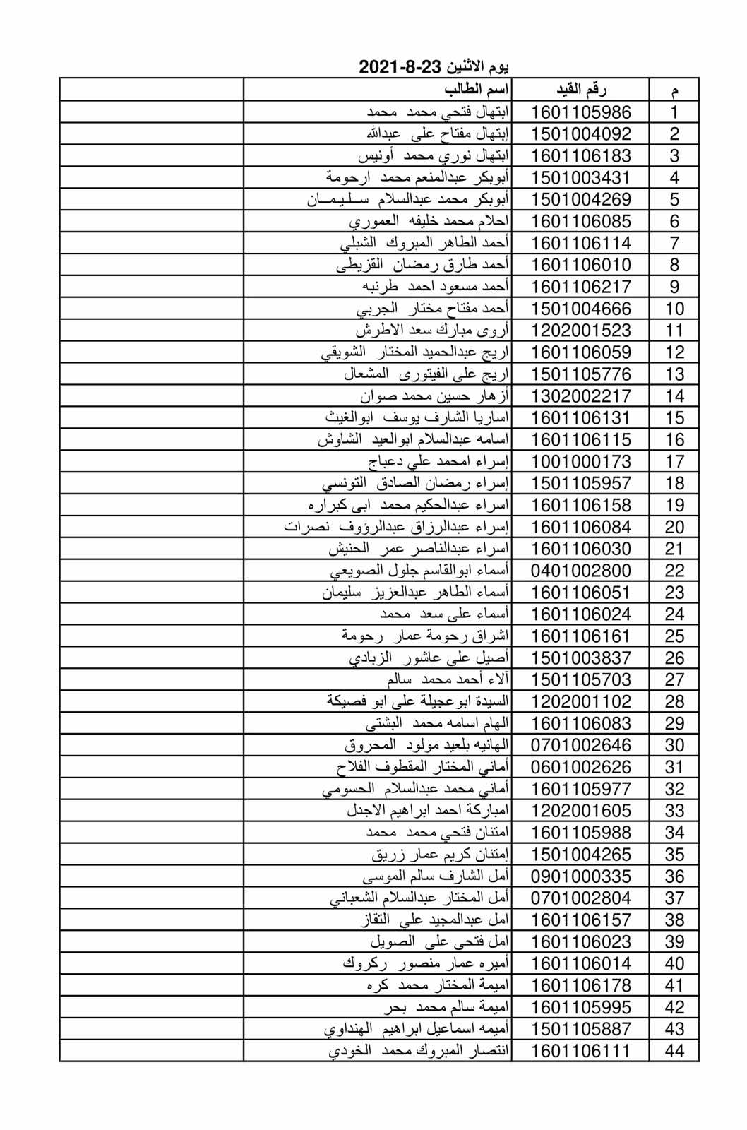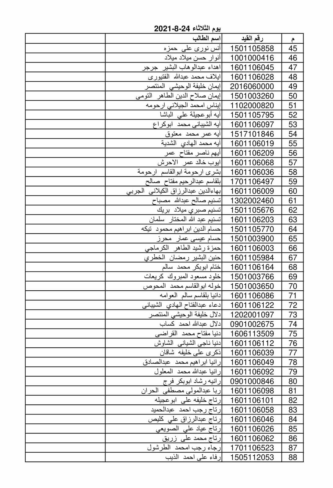 وذلك حسب القوائم المرفقة