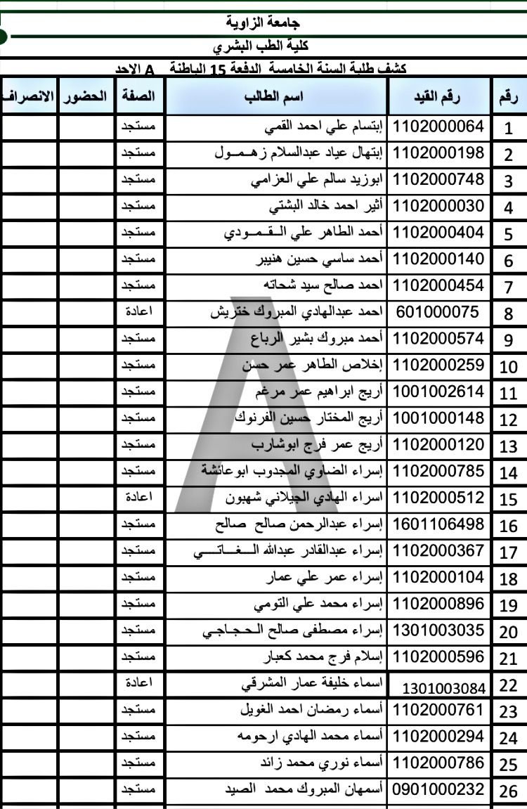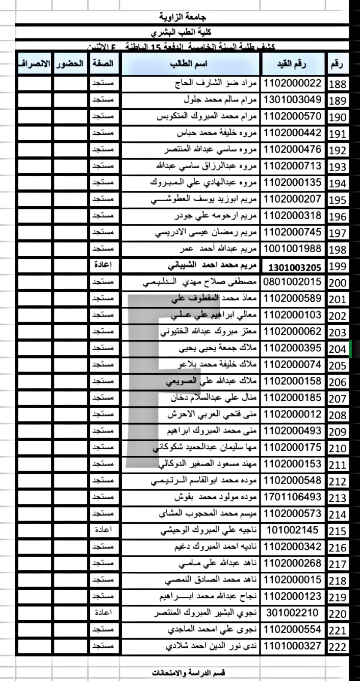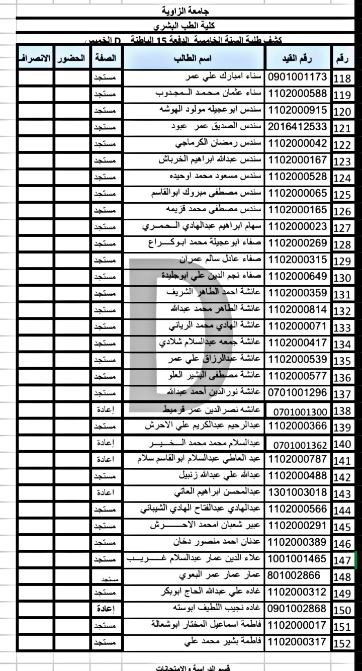 تقسيم مجموعات الامتحان السريري الدور الأول لمادة الباطنة للسنة الخامسة الدفعة 15 والتكميلي: