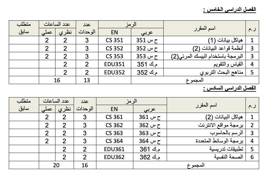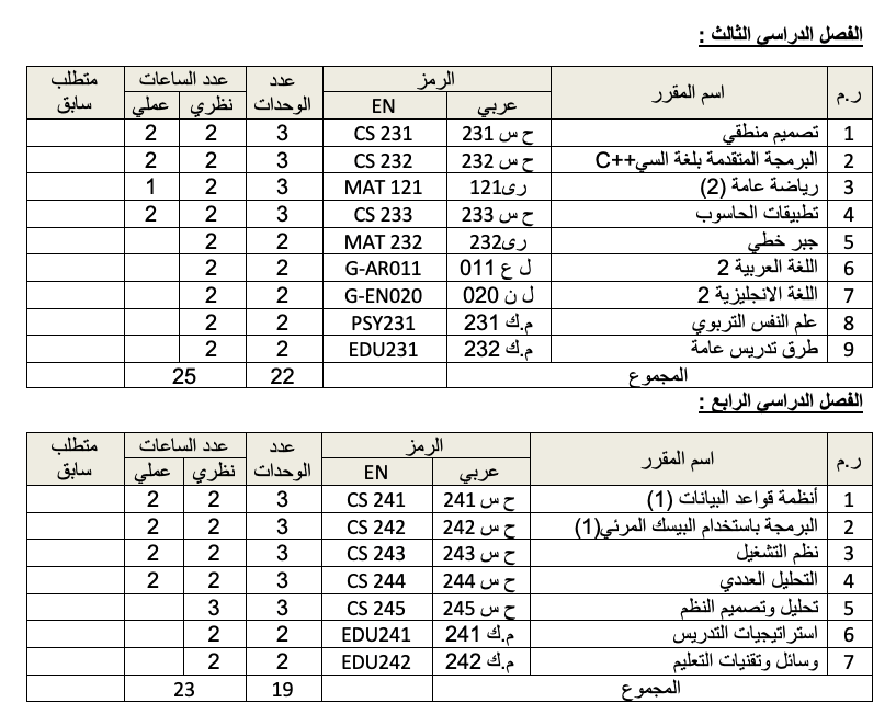 - تطوير وتحديث المناهج والمقررات العلمية والتطبيقية في مجال الحاسب الإلى والعلوم ذات العلاقة.