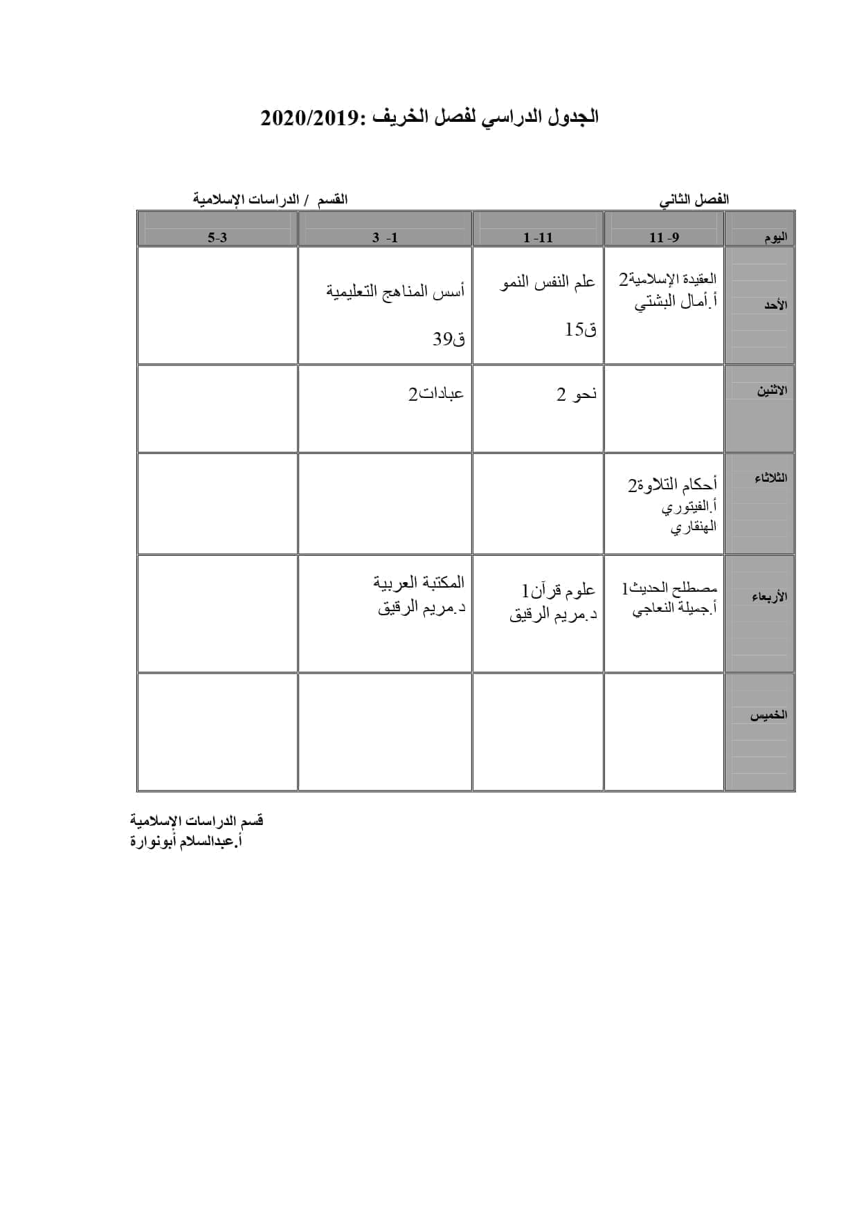 - يتبادل القسم الخبرات مع الأقسام الأخرى في الكلية بما في ذلك تدريس مادتي اللغة العربية والدراسات القرآنية في كافة أقسام الكلية والكليات الأخرى بالجامعة عند الحاجة.