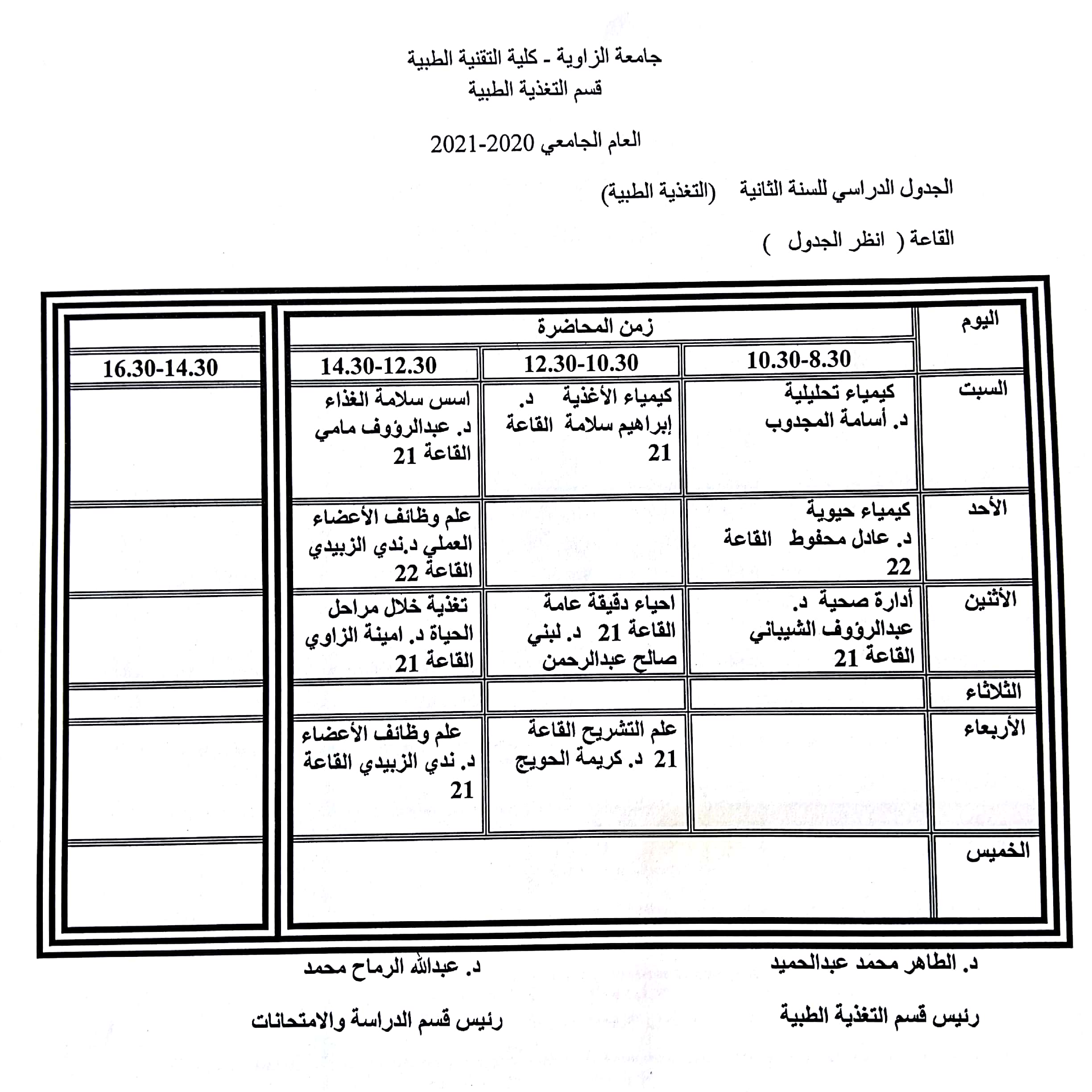 الجدول الدراسي للسنة الثانية للعام الجامعي 2021/2020م الجدول الدراسي للسنة الثانية للعام الجامعي 2021/2020م