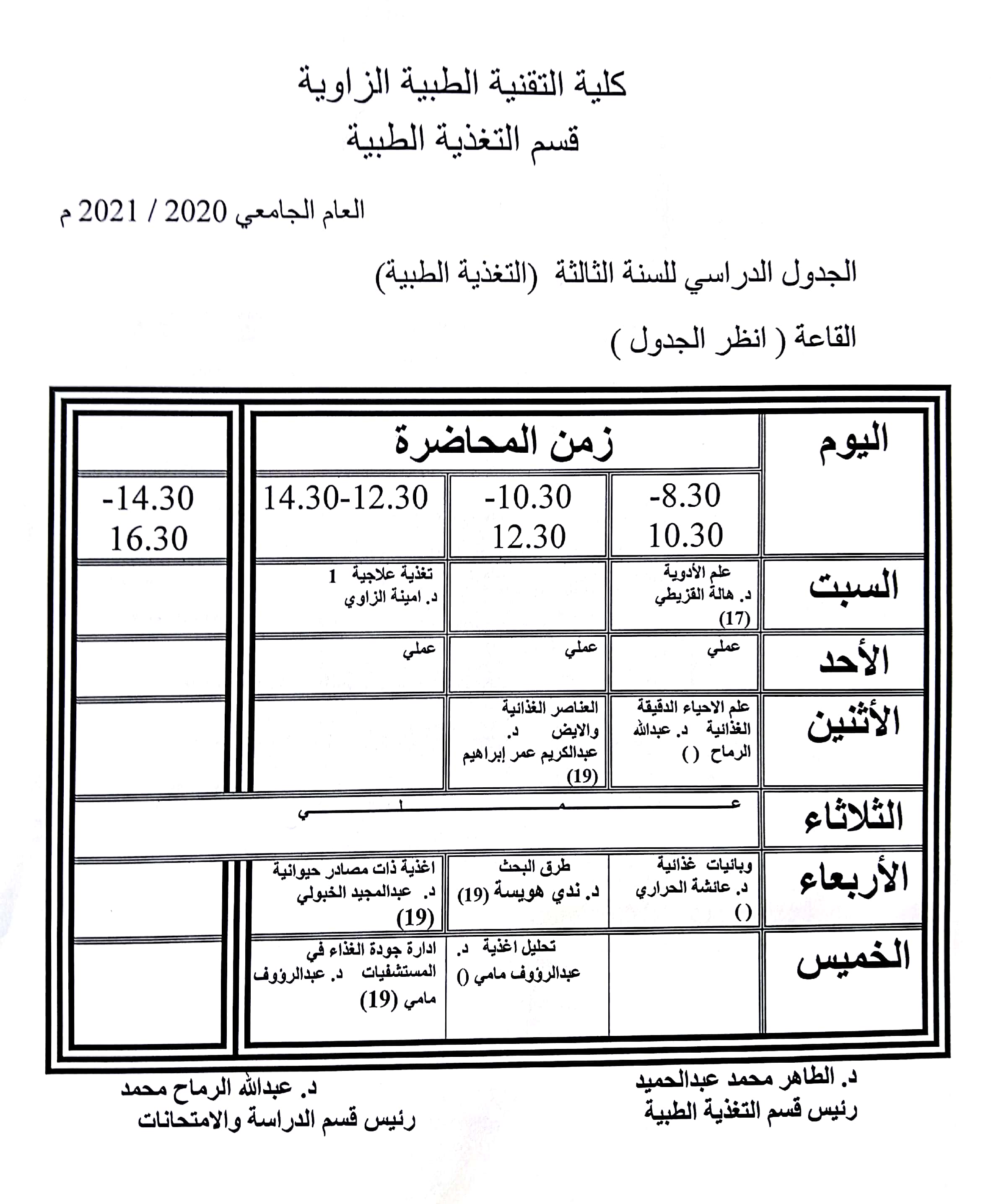 الجدول الدراسي للسنة الثالثة للعام الجامعي 2021/2020م الجدول الدراسي للسنة الثالثة للعام الجامعي 2021/2020م