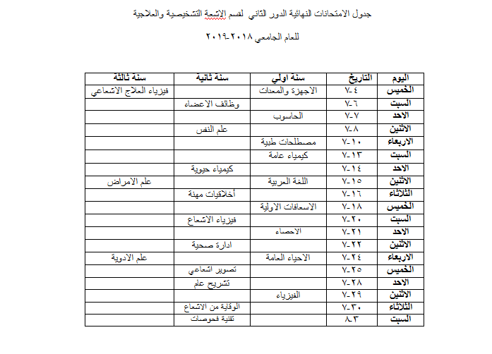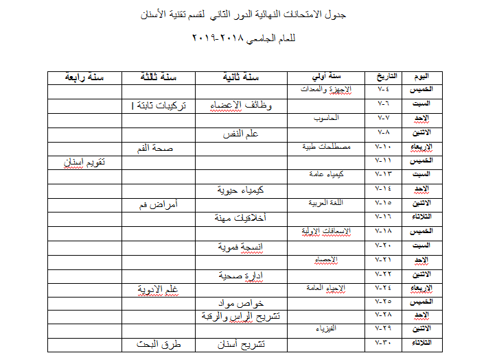 نرفق لكم أدنى هذا الإعلان صور الجداول المعدلة والنهائية للإمتحانات النهائية للدور الثاني للعام الجامعي 2019/2018 .