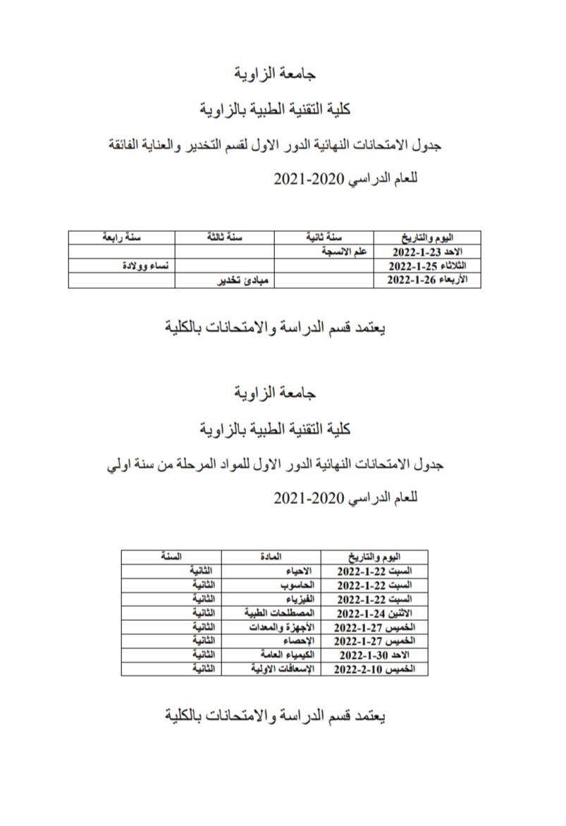 نرفق لكم أدنى هذا الإعلان بمعرض الصور جداول الإمتحانات النهائية الخاصة بكم .