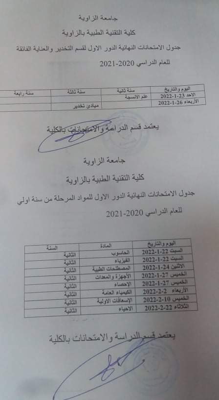 نرفق لكم أدنى هذا الإعلان بمعرض الصور جداول الإمتحانات النهائية "المُعدّلة تعديلاً نهائيا" الخاصة بكم .