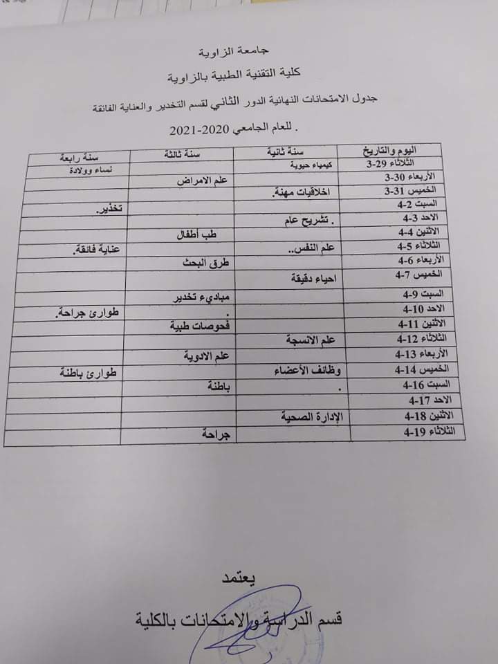 نرفق لكم أدنى هذا الإعلان بمعرض الصور تعديل لبعض الجداول للدور الثاني .