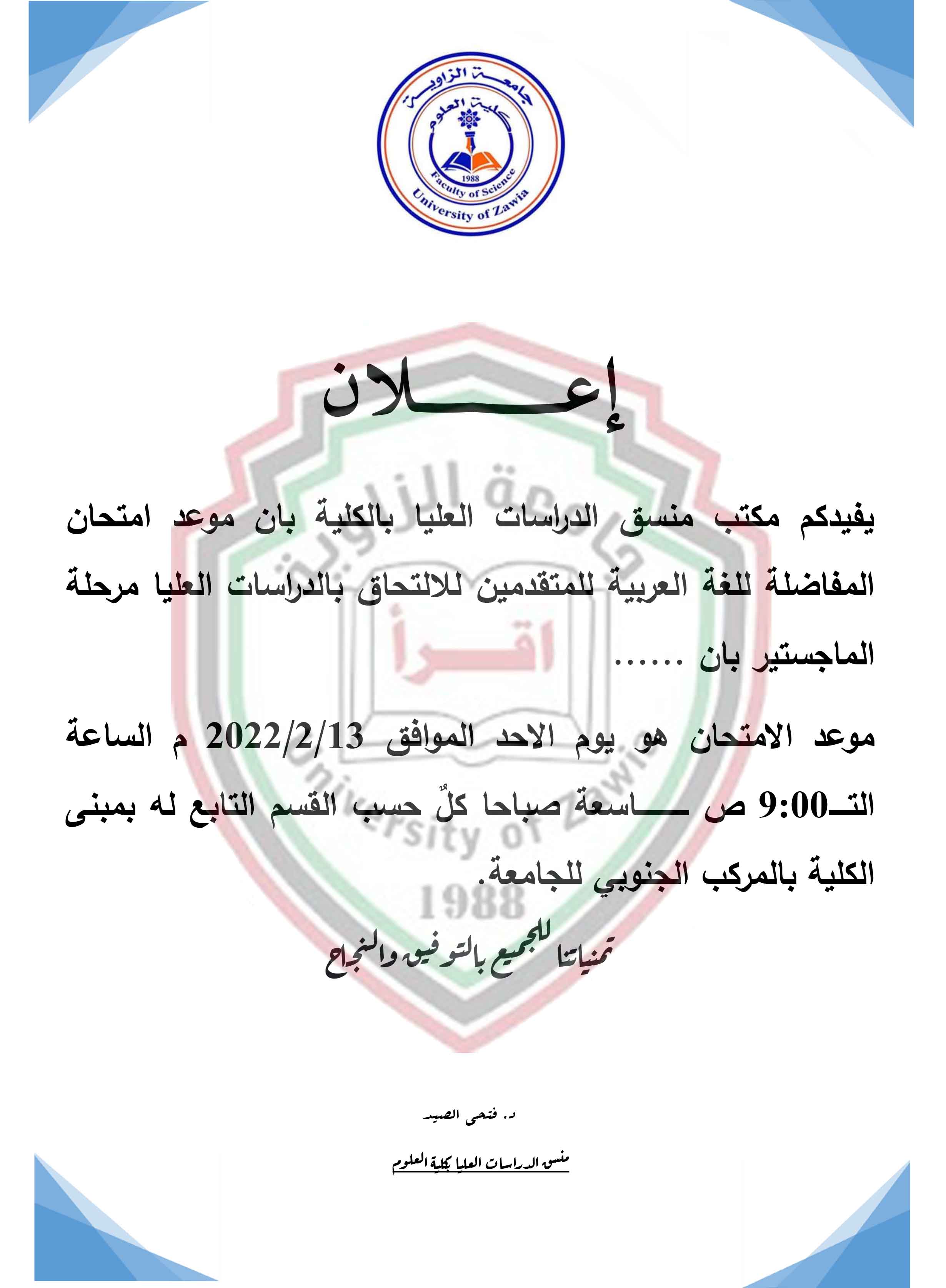 الي جميع طلبة وطالبات كلية العلوم بجامعة الزاوية
