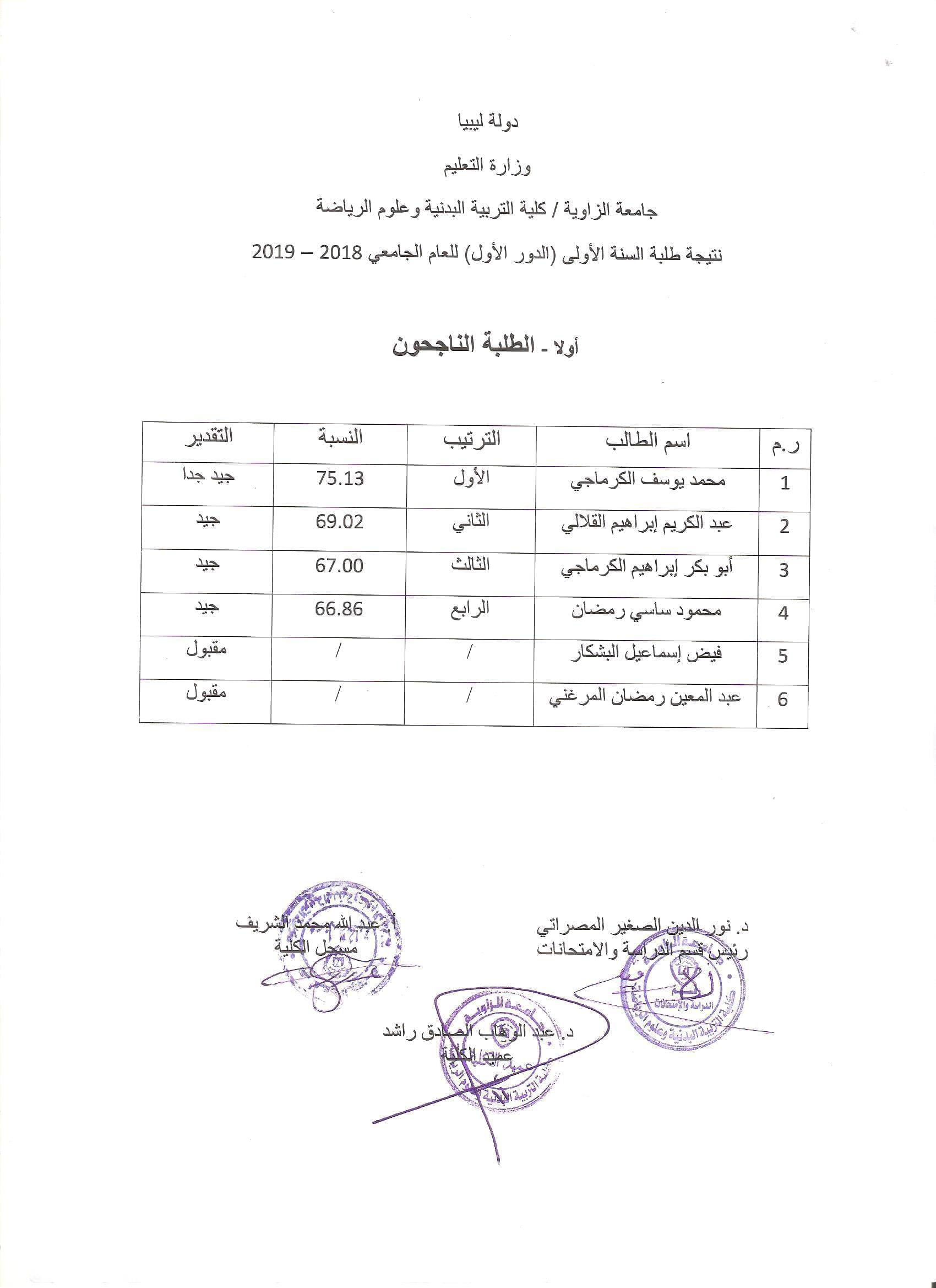 نتيجة كلية التربية البدنية وعلوم الرياضة الدور الاول لسنة 2018-2019