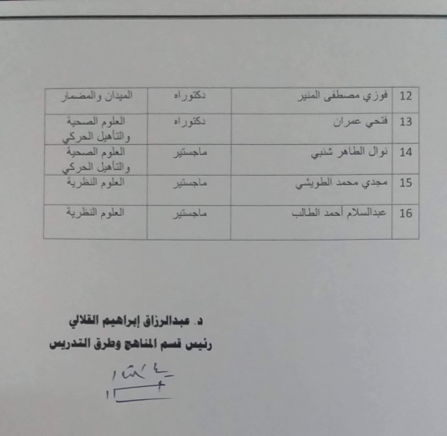 إعلان للمشرفين على التدريب الميداني بكلية التربية البدنية وعلوم الرياضة