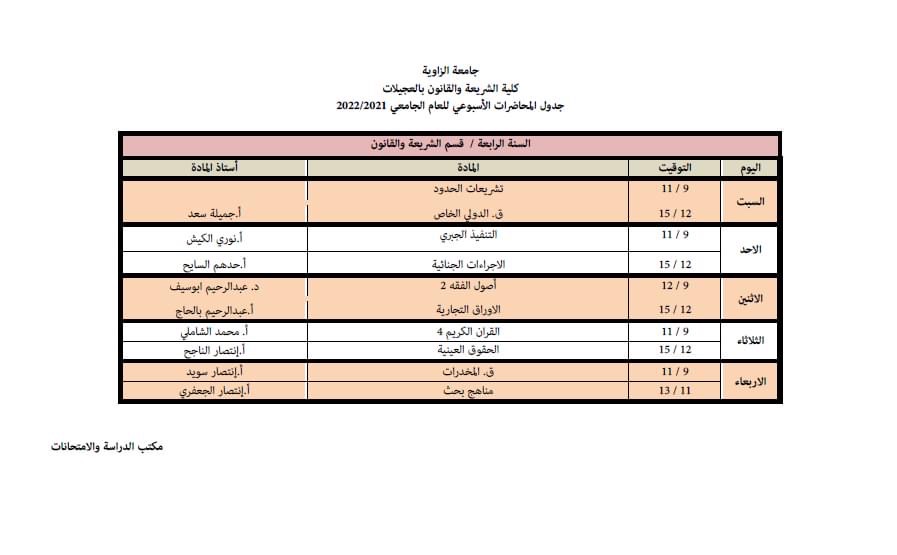 الجدول الدراسي