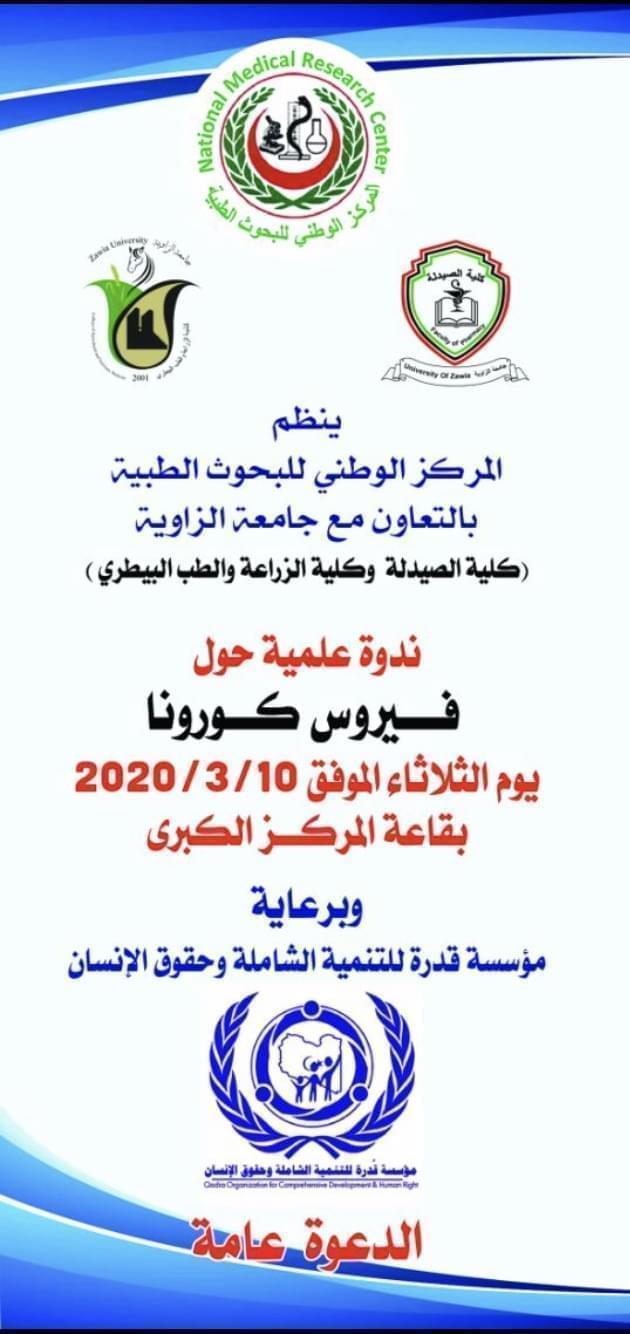 ينظم المركز الوطني للبحوث الطبية بتعاون مع جامعة الزاوية (كلية الصيدلة - كلية الزراعة و الطب البيطري)