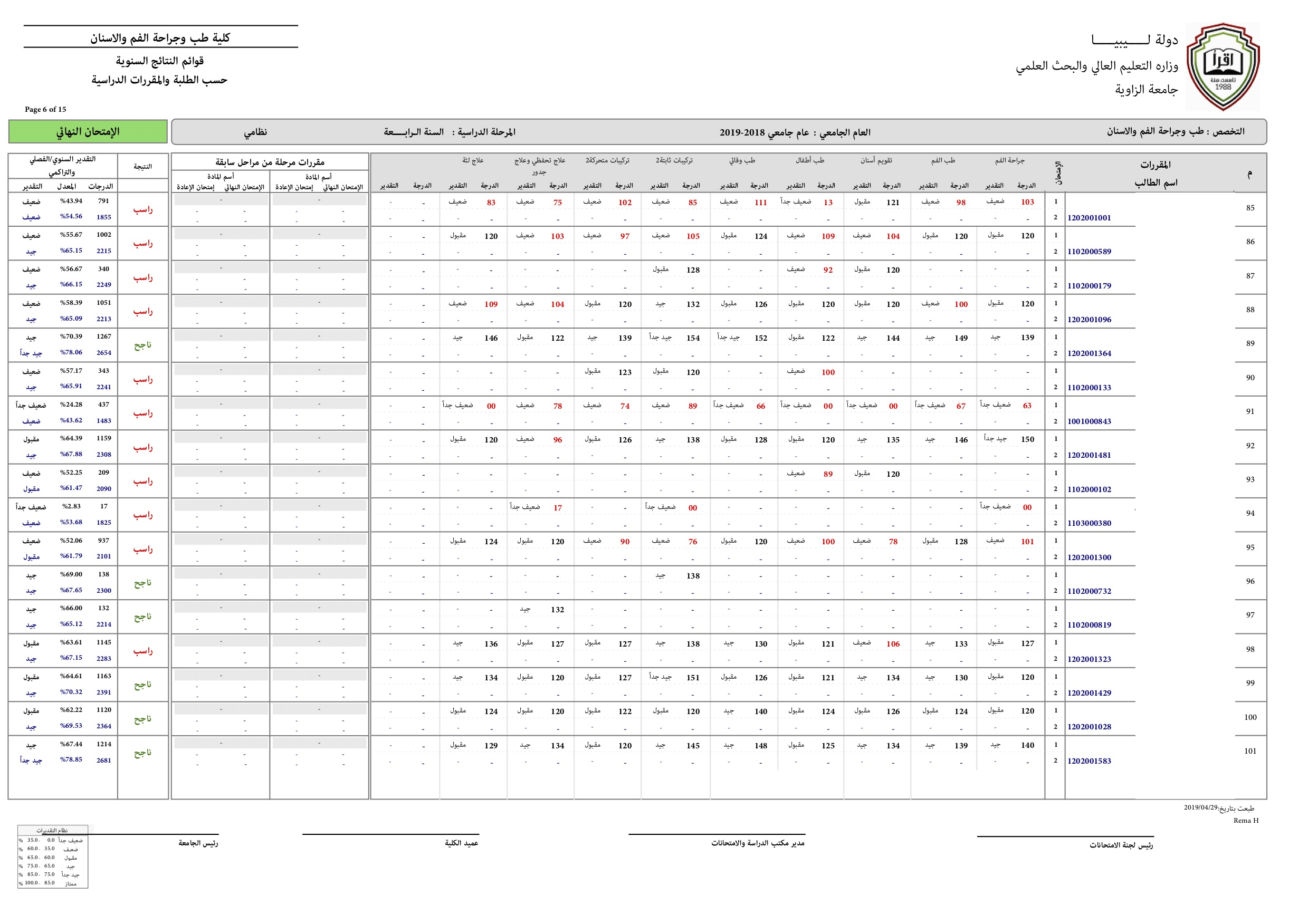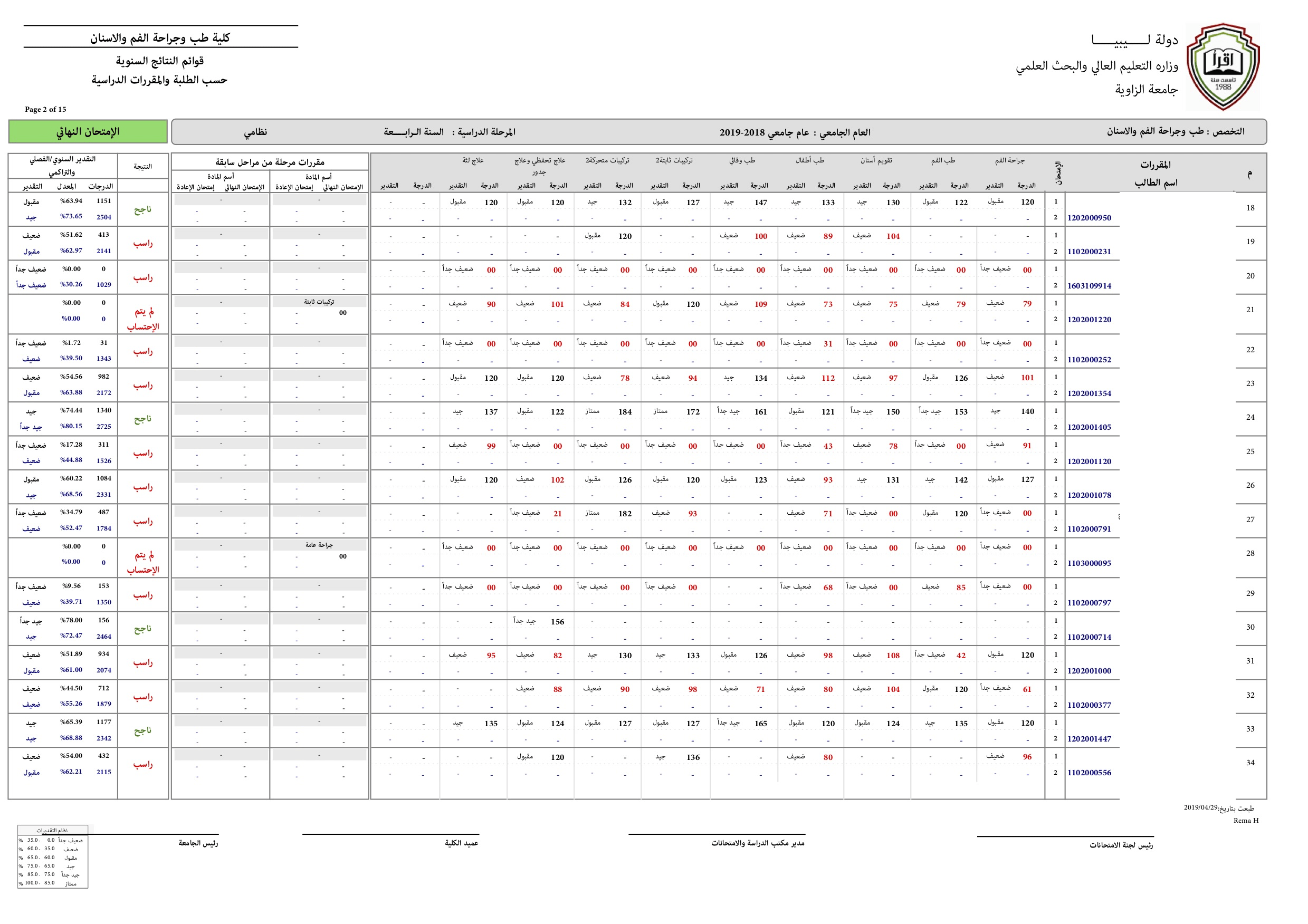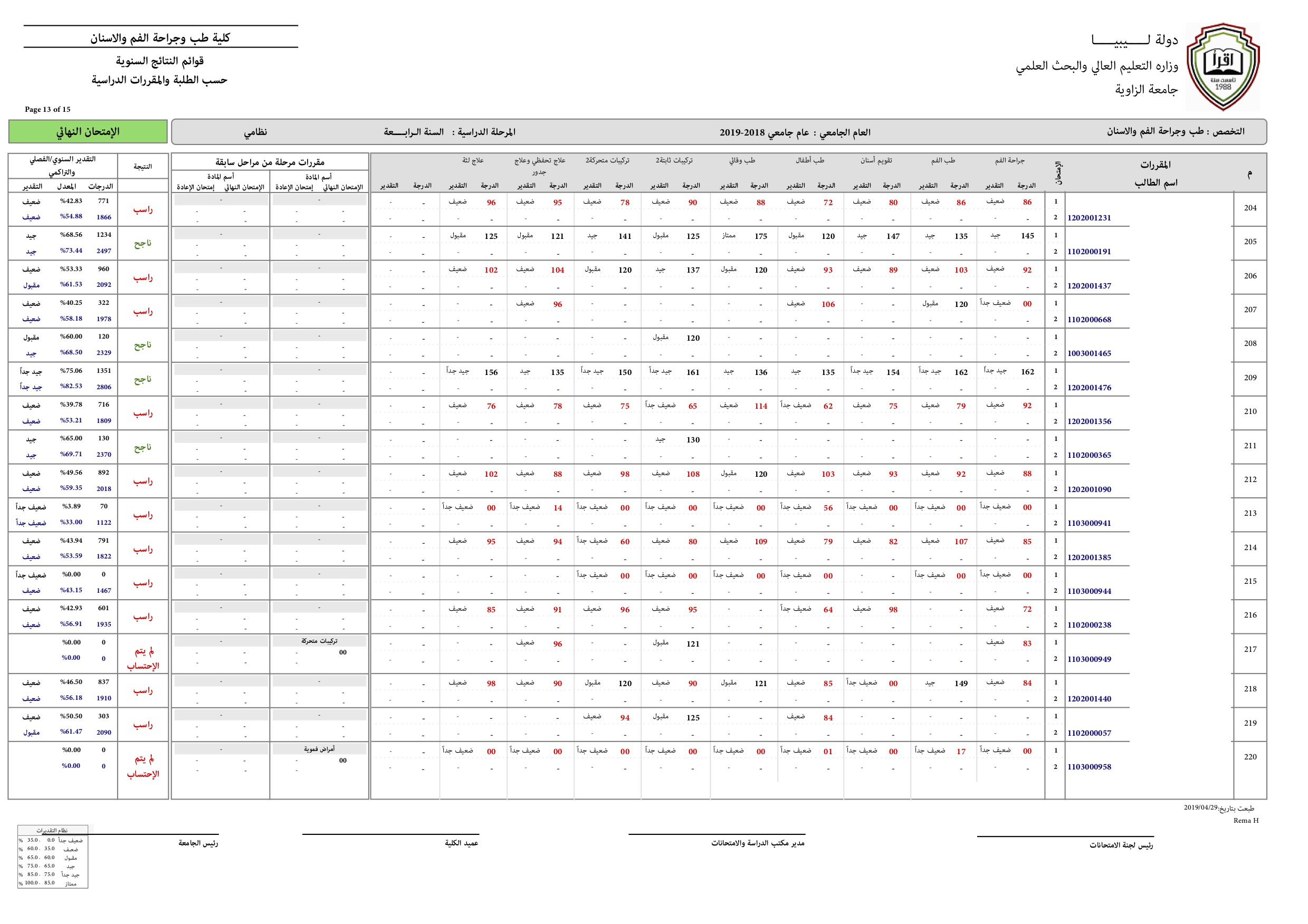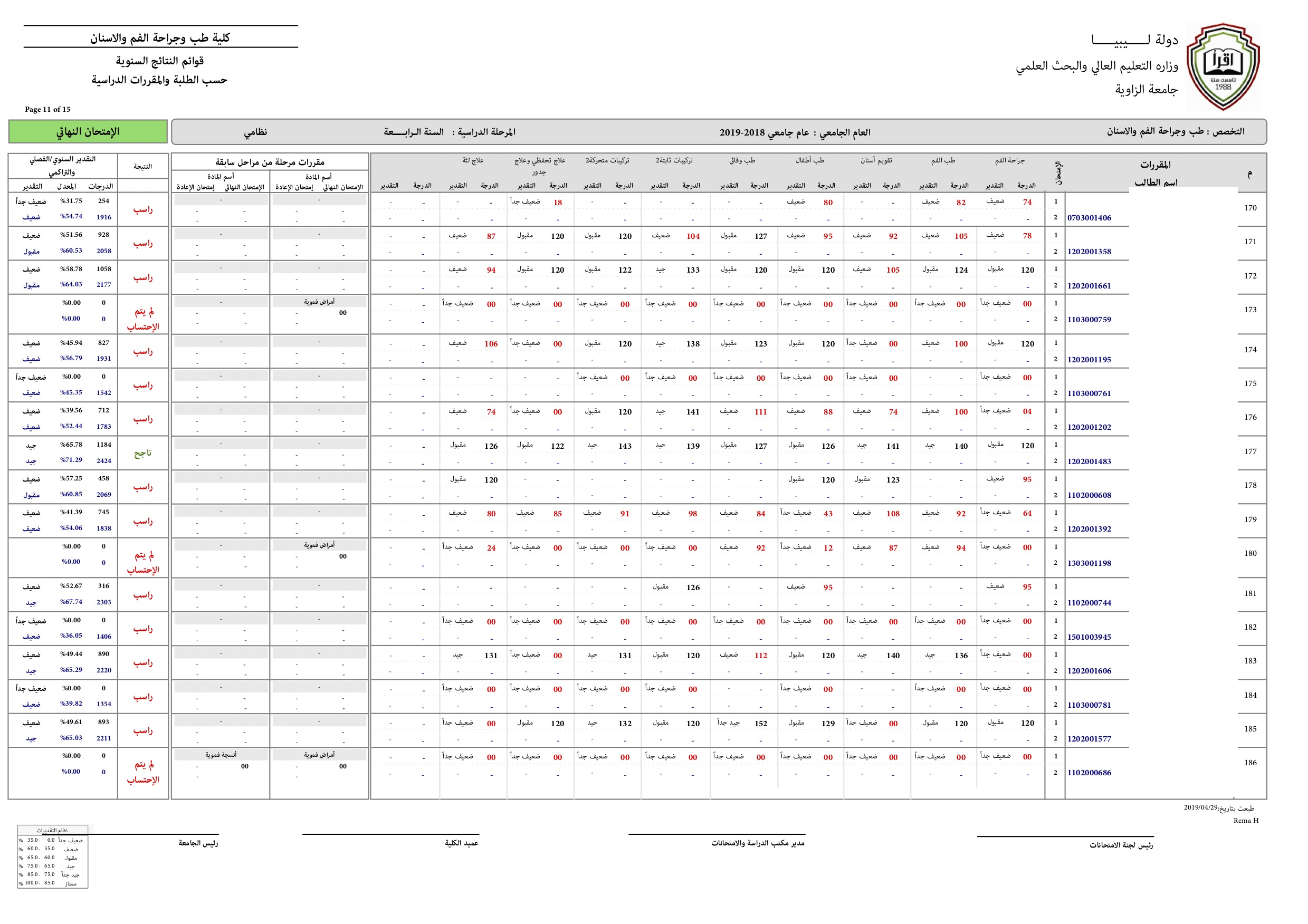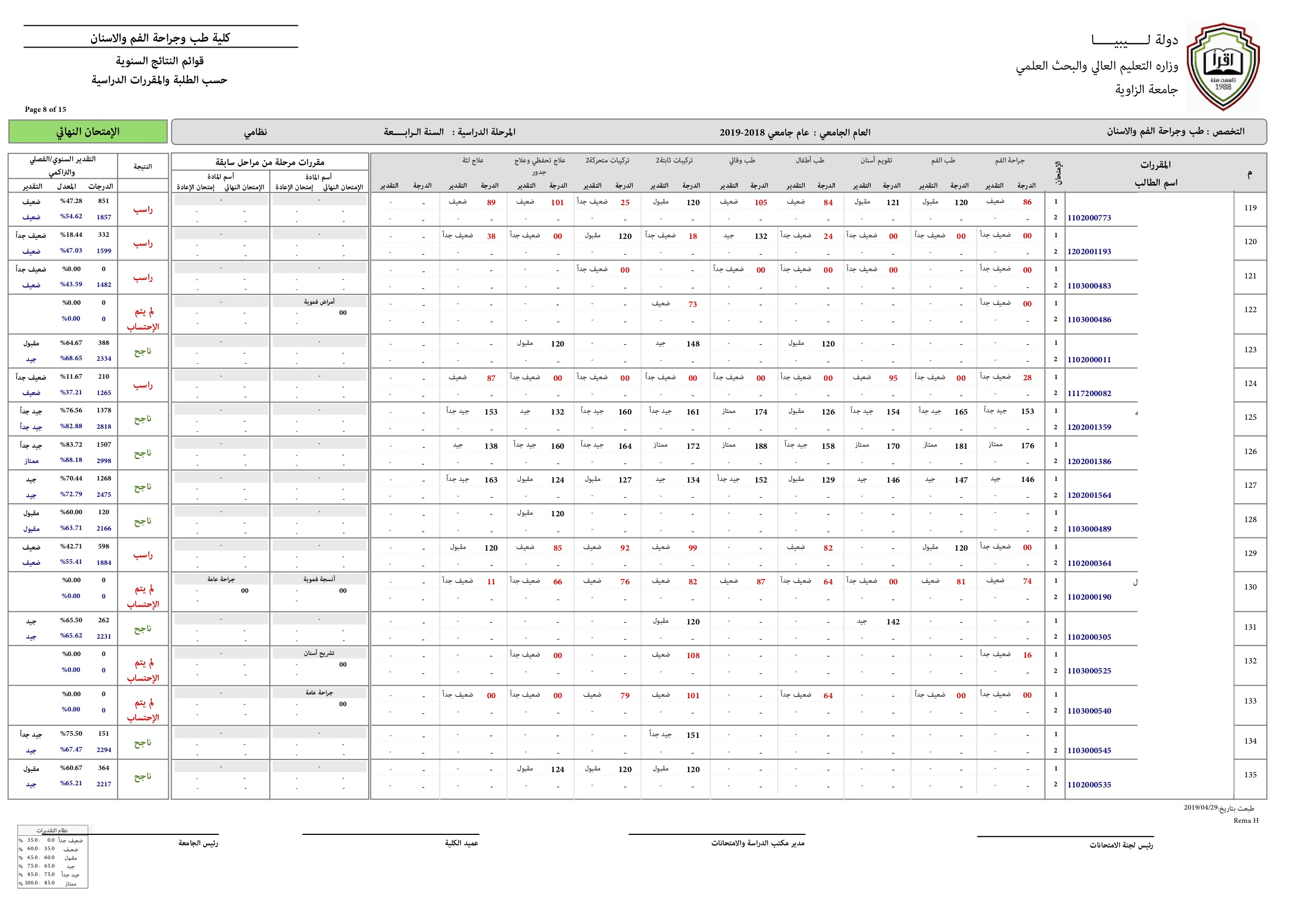 نتيجة السنة الرابعة للعام الجامعي 2018-2019