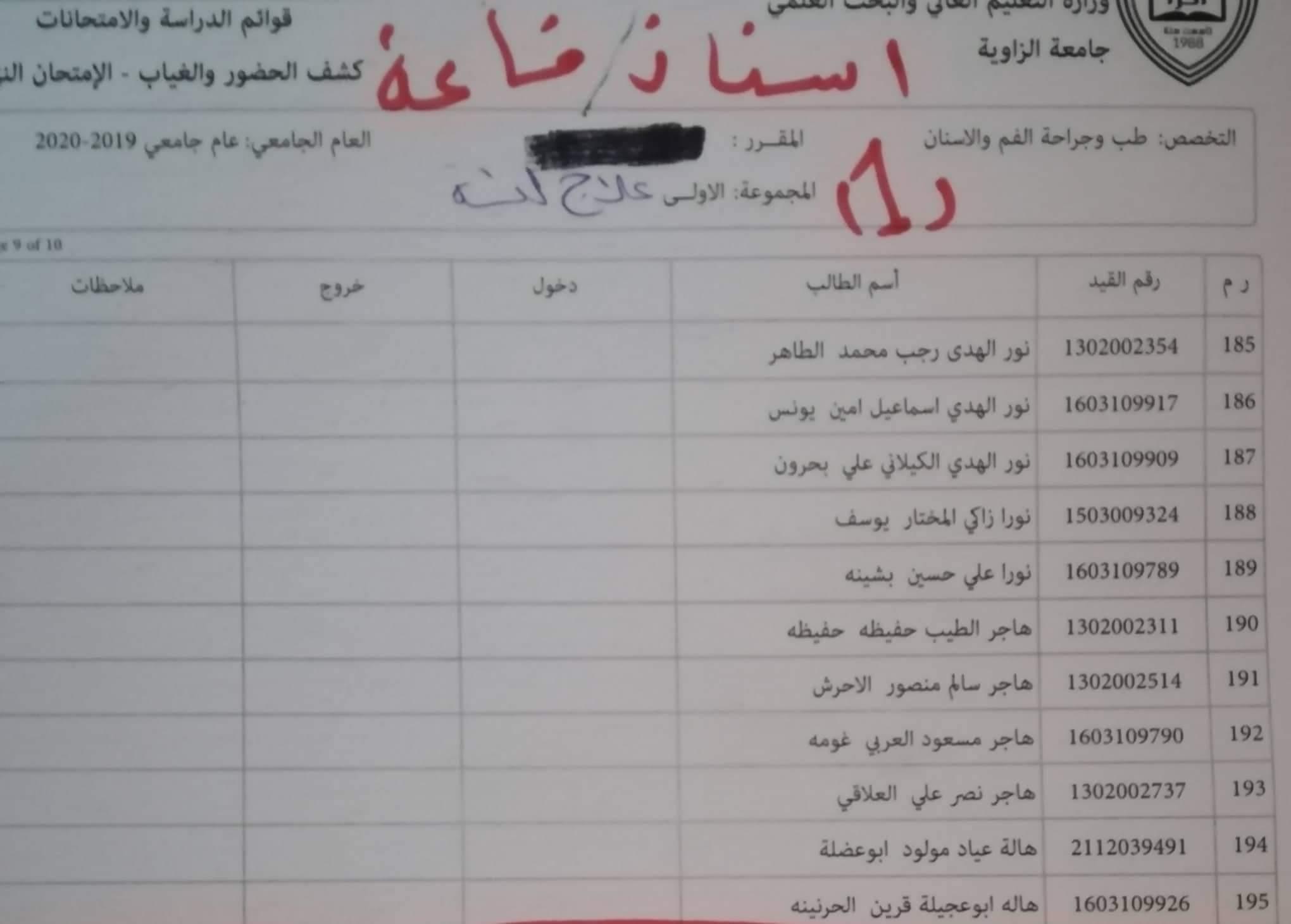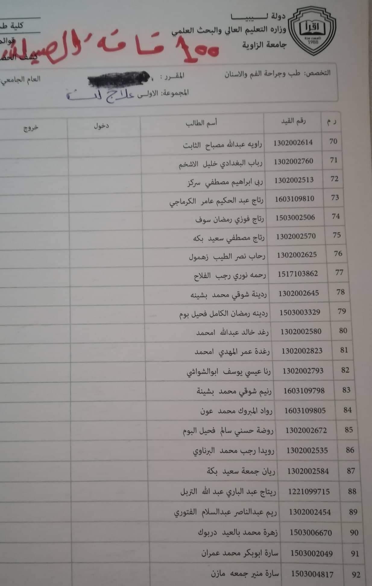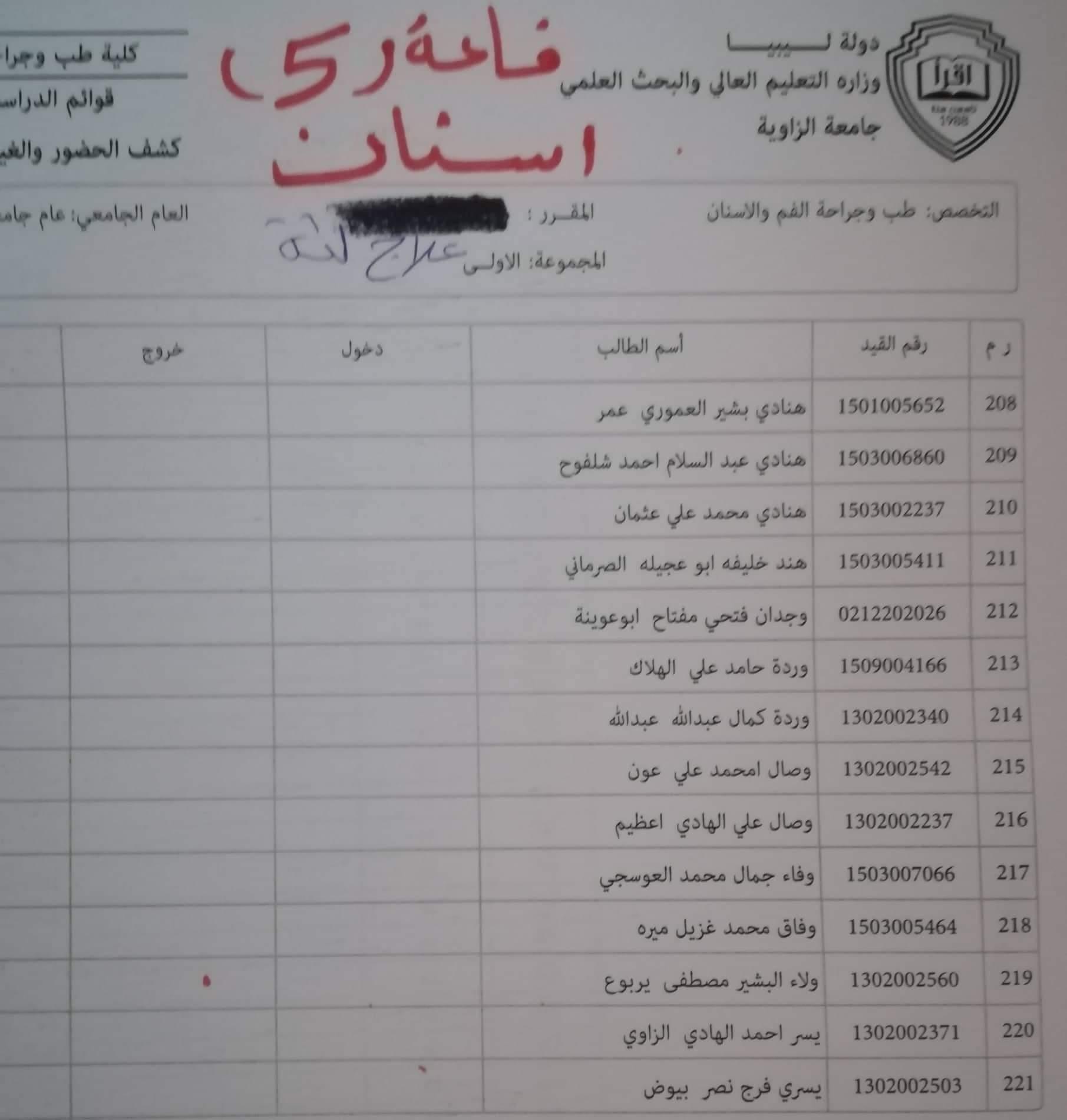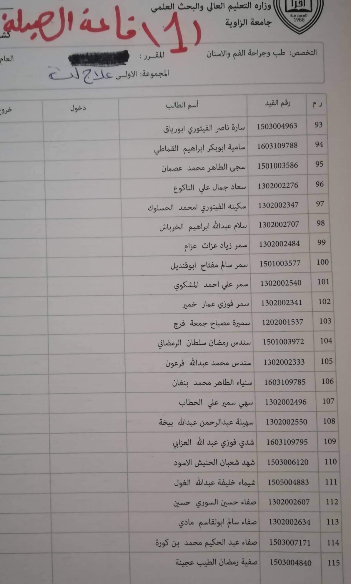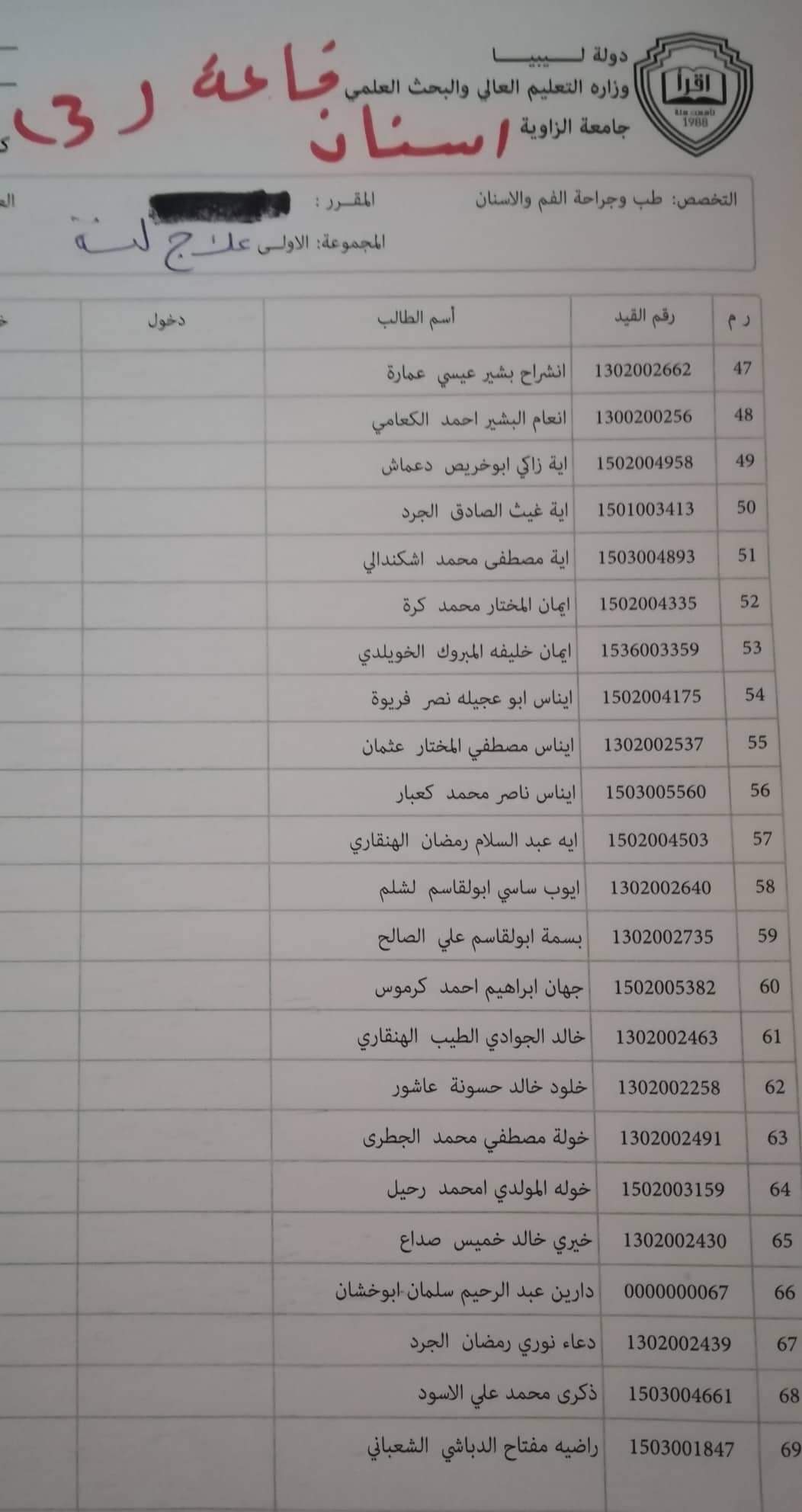 توزيع القاعات لطلبة السنه الرابعة الدفعة 14 للامتحان النظري لمادة علاج اللثه ليوم السبت الموافق 28 / 12 / 2019 على تمام الساعة 9