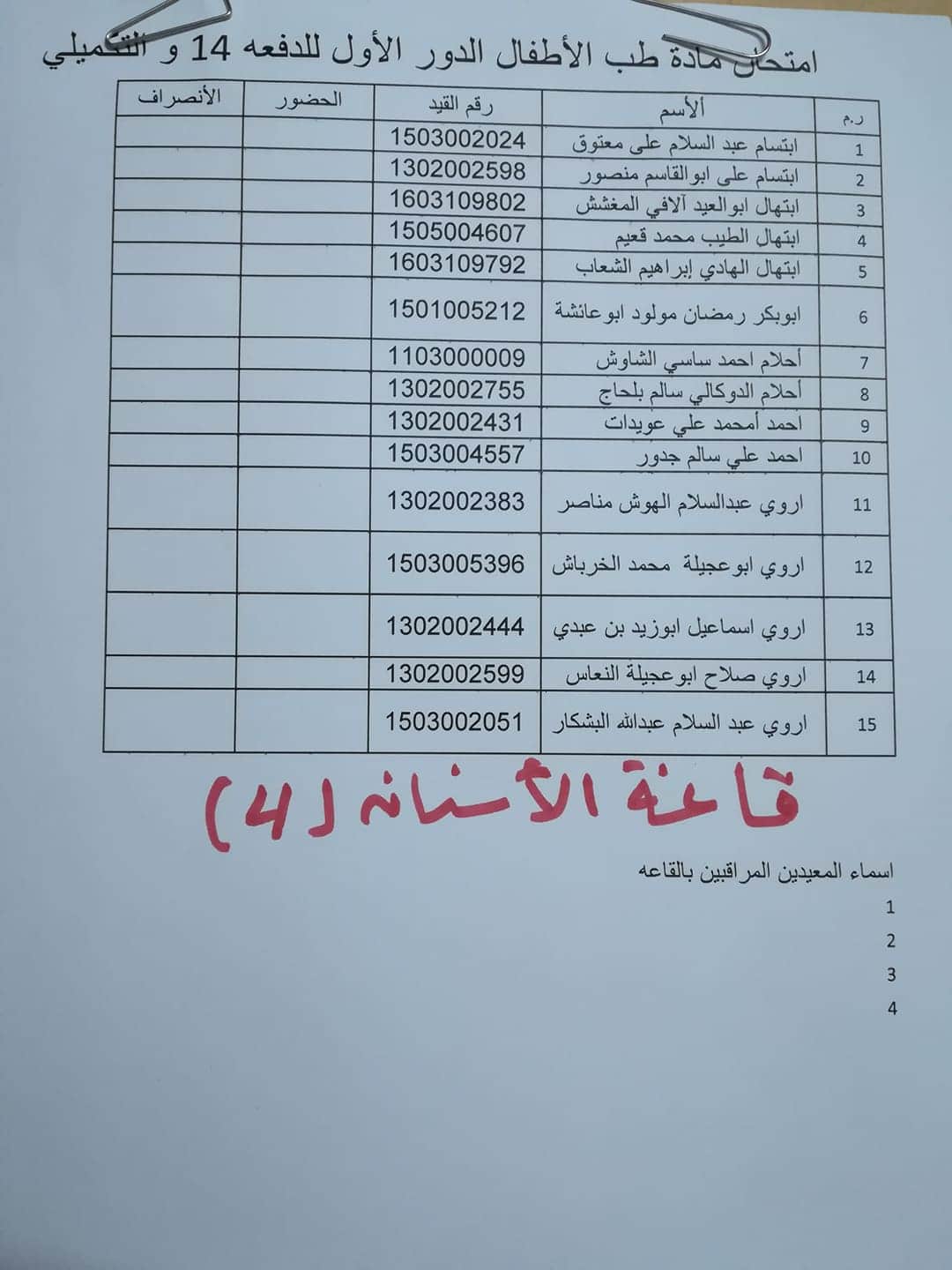 توزيع قوائم الطلبه للامتحان مادة طب الأطفال ليوم غذا الاثنين الموافق 20_7_2020 بقاعات الأسنان والصيدلة