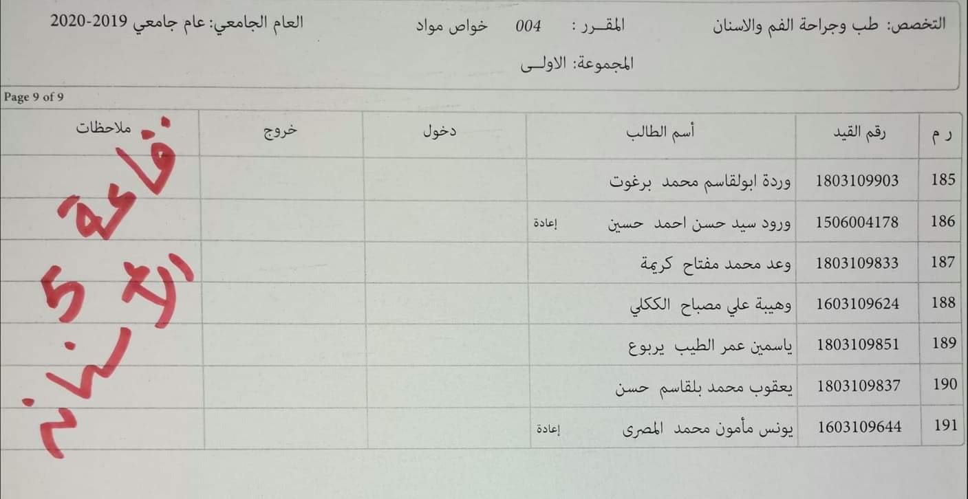 توزيع القاعات للامتحان الدور الأول السنة الأولى ليوم الأربعاء الموافق 30 / 9 / 2020   لمادة خواص-المواد على تمام الساعه 9:00،،بالتوفيق للجميع يرجى الإلتزام بالإجراءات الوقائية