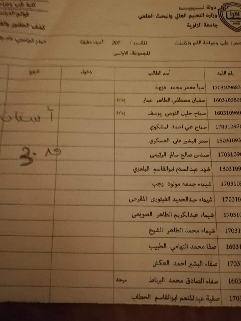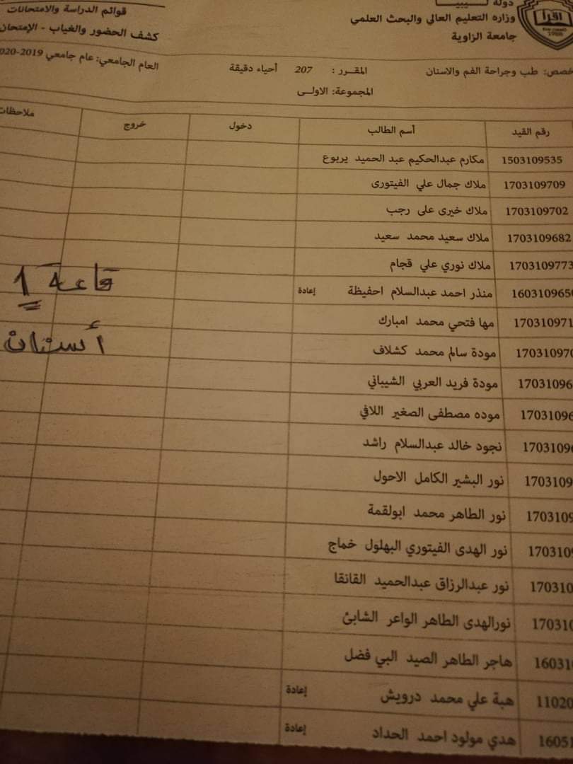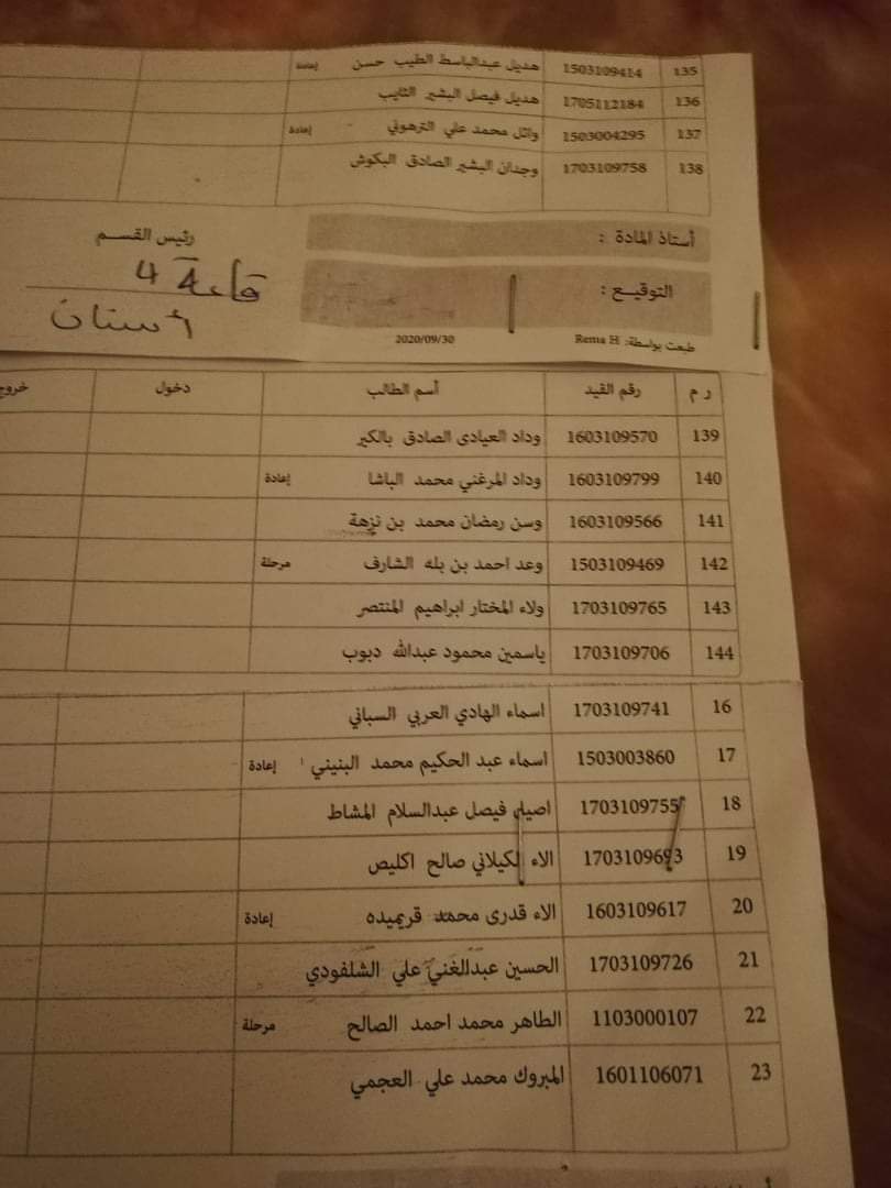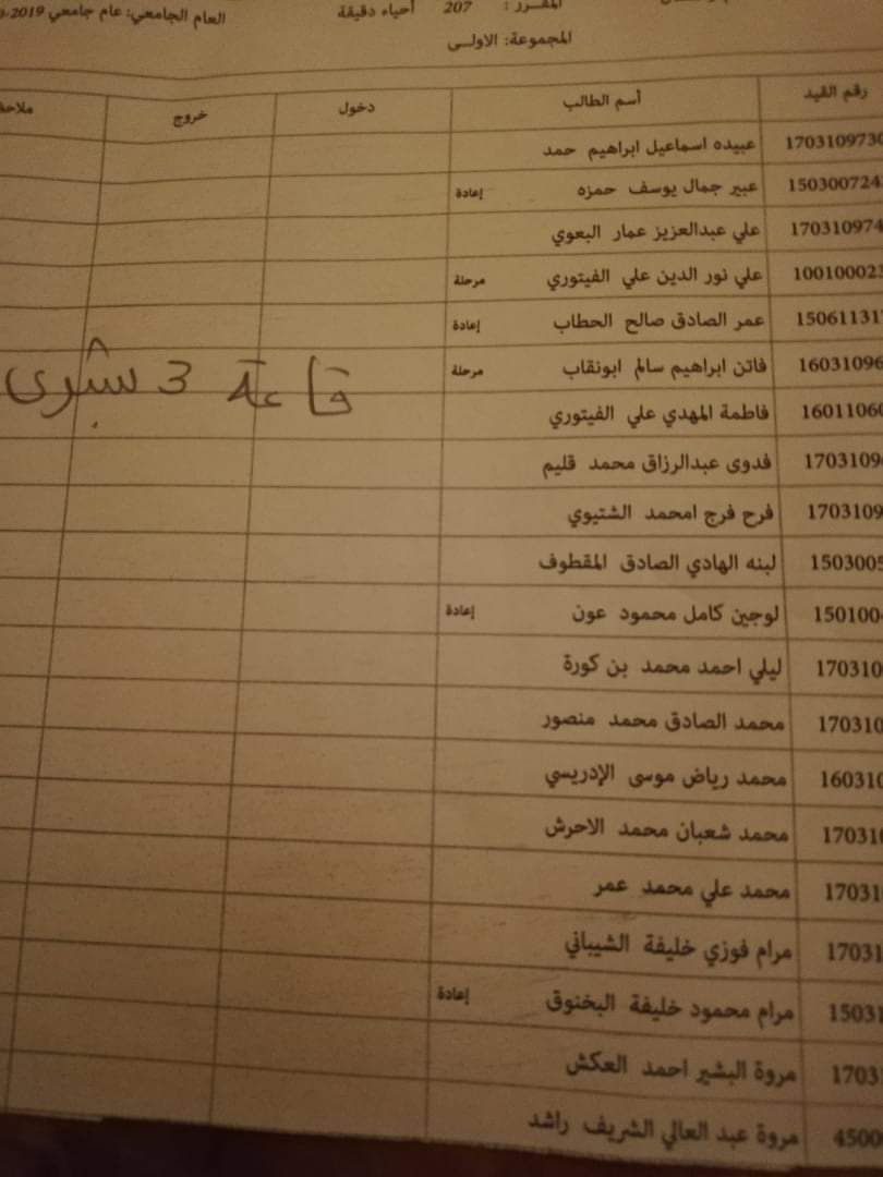 قوائم توزيع القاعات للامتحان الدور الأول السنة الثانية ليوم غذا الأربعاء الموافق 21 / 10 /2020 لمادة الأحياء الدقيقة على تمام الساعه 9