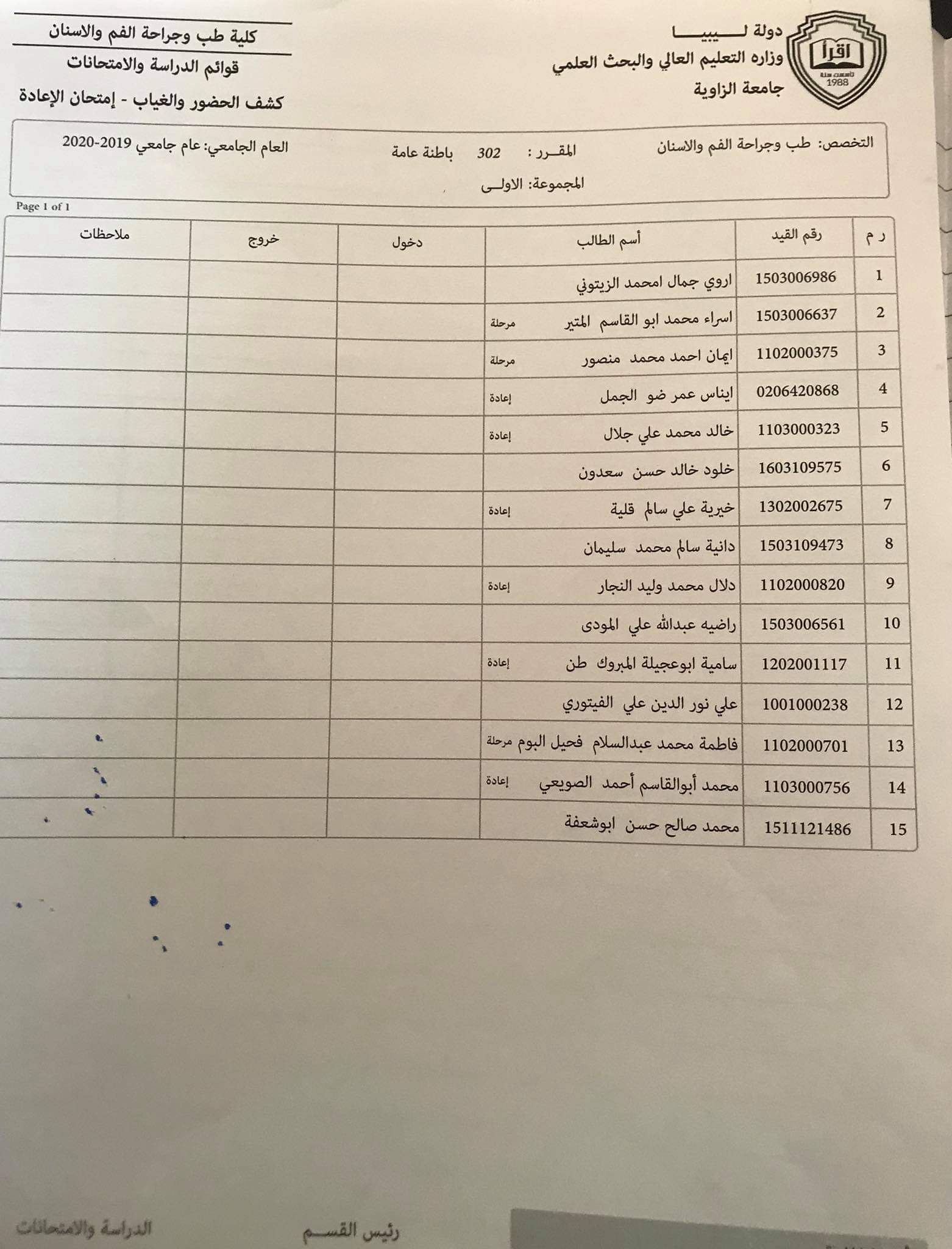 قائمة بأسماء المعيدين المراقبين وقايمة بتوزيع القاعات للامتحان الدور الثاني لطلبة السنة الثالثة لمادة باطنة العامة