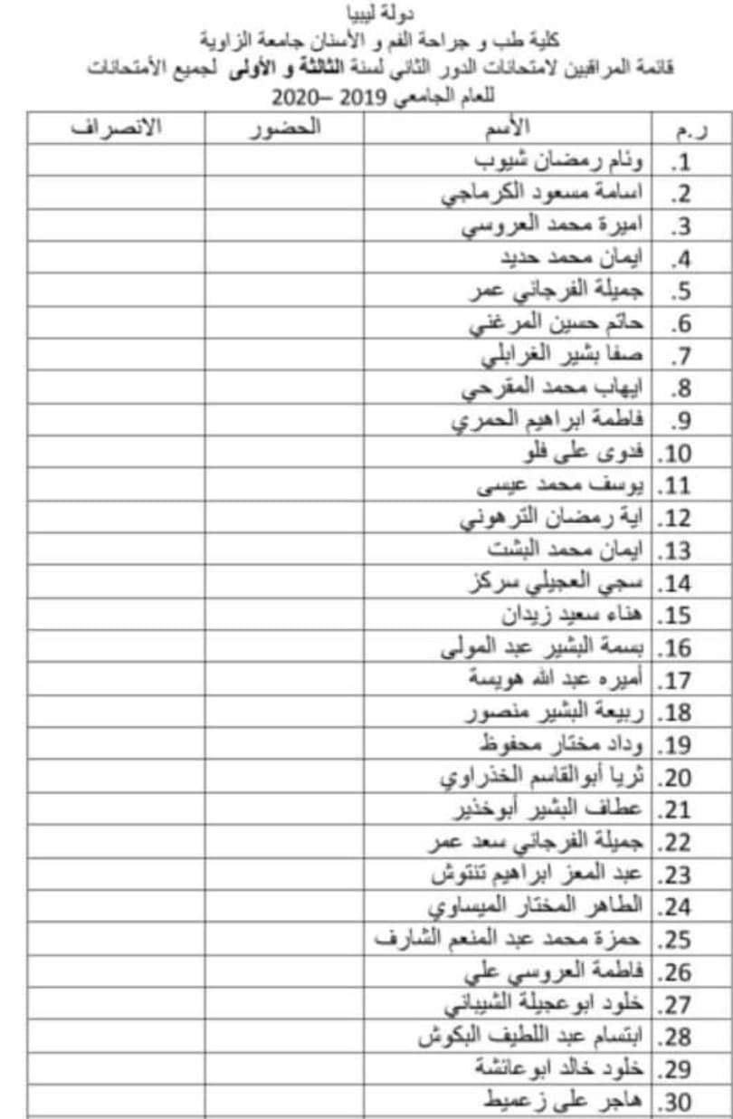 قائمة المعيدين المراقبين على امتحان الدور الثاني للسنه الأولى مادة خواص المواد ليوم السبت الموافق 2 / 1 /2021 على تمام الساعه 9:00يرجى الإلتزام بالحضور