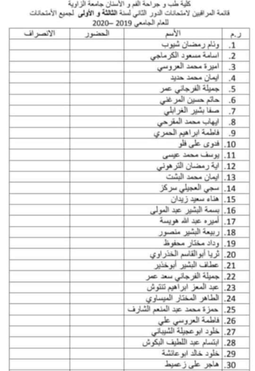 قائمة بأسماء المعيدين المراقبين على امتحان الدور الثاني للسنه الأولى