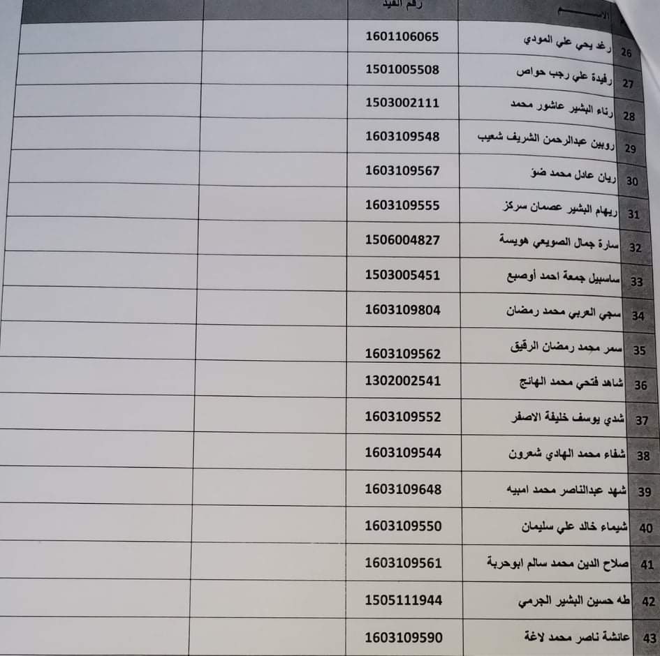 قائمة أسماء طلبة السنه الرابعه الدفعه 16 المجموعة (الأولى)