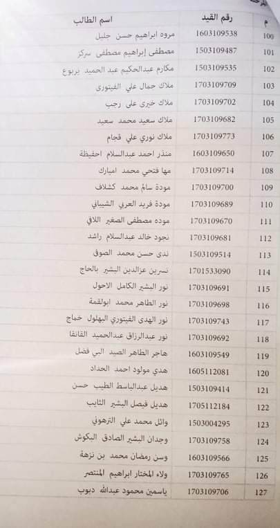 قوائم طلبه السنه الثالثه المجموعه الثانيه