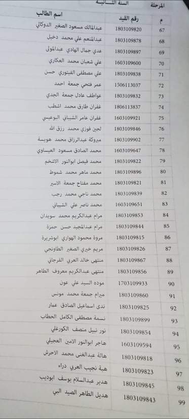 قوائم طلبه السنه الثانيه المجموعه الثانيه