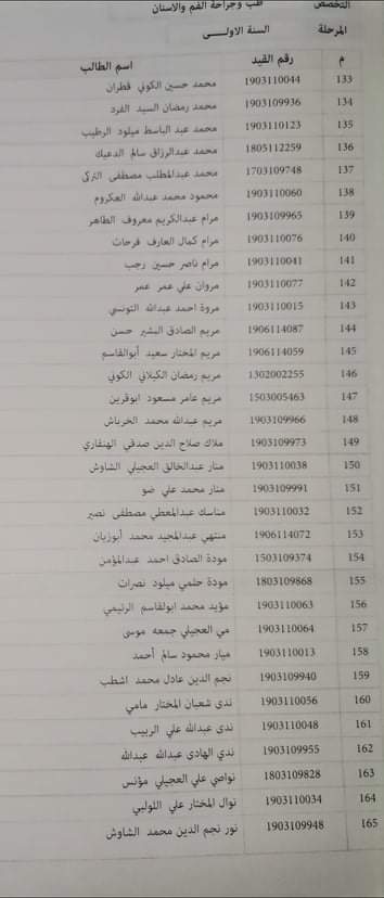 قوائم طلبة السنة الأولي المجموعة الثانية