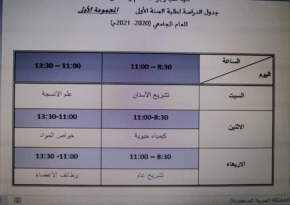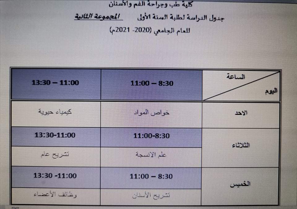 جدول السنه الأولى المجموعة الأولى والثانية بعد التعديل
