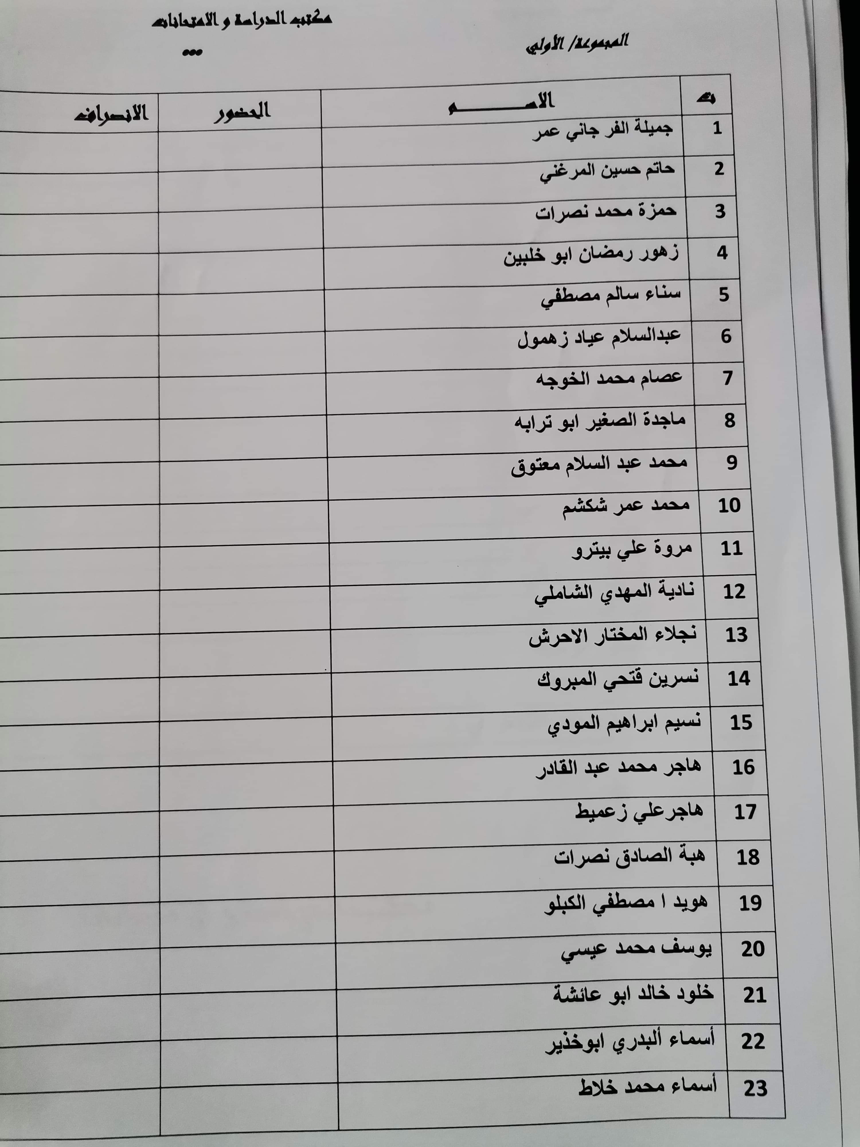 قائمة المعيدين المراقبين على امتحان الدور الأول السنة الرابعة الدفعه 15 والتكميلي ليوم الأحد القادم الموافق 13 /6 /2021 على تمام الساعه 9 يرجى الإلتزام بالحضور للأهمية