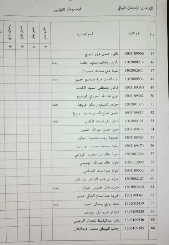 قوائم الطلبة للامتحان العملي ليوم غذا الاثنين