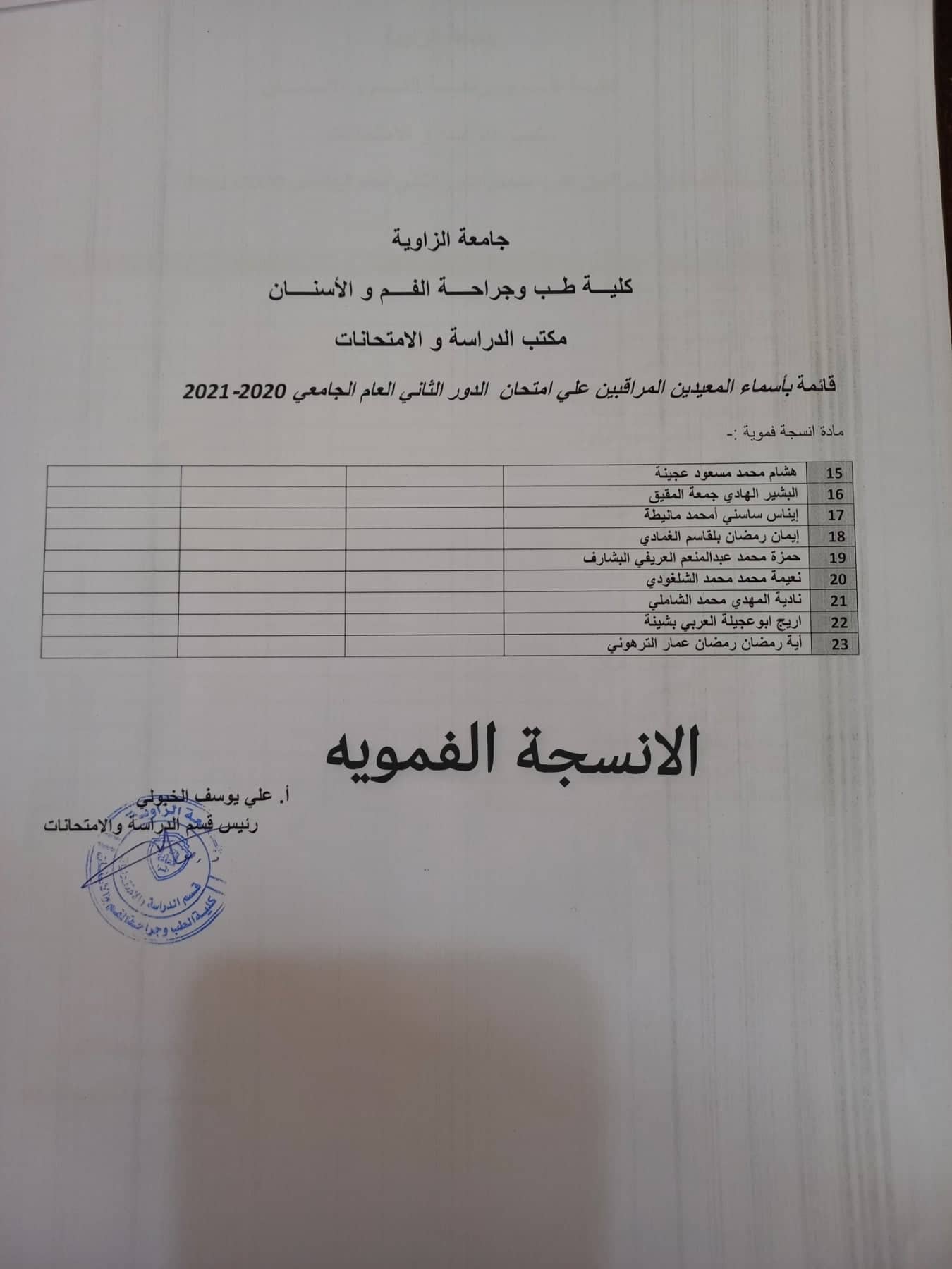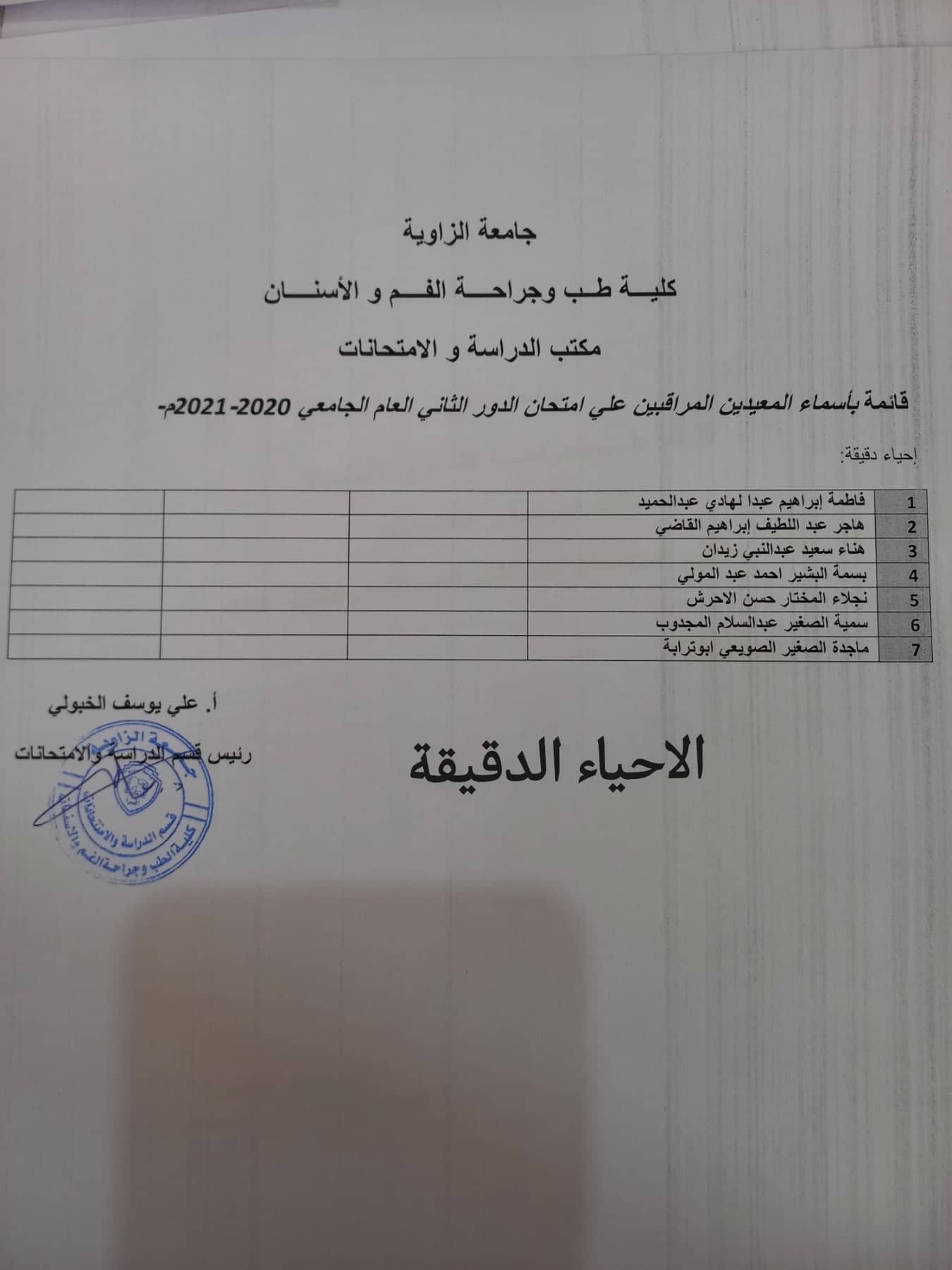 قوائم المعيدين المراقبين لامتحانات الدور الثاني لجميع السنوات يرجي الالتزام بالحضور بالموعد