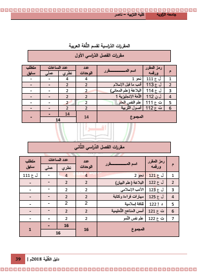 الخطة الدراسية