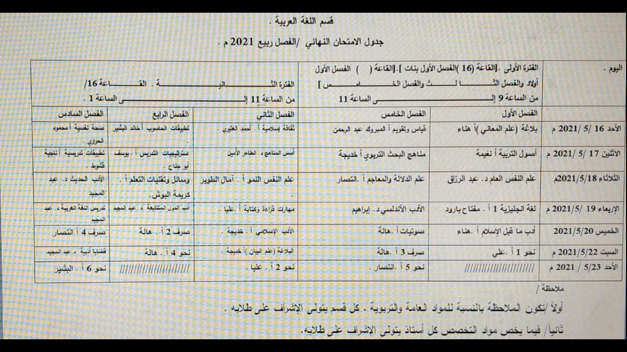 جدول امتحانات خريف 2021/2020 جدول امتحانات خريف 2021/2020