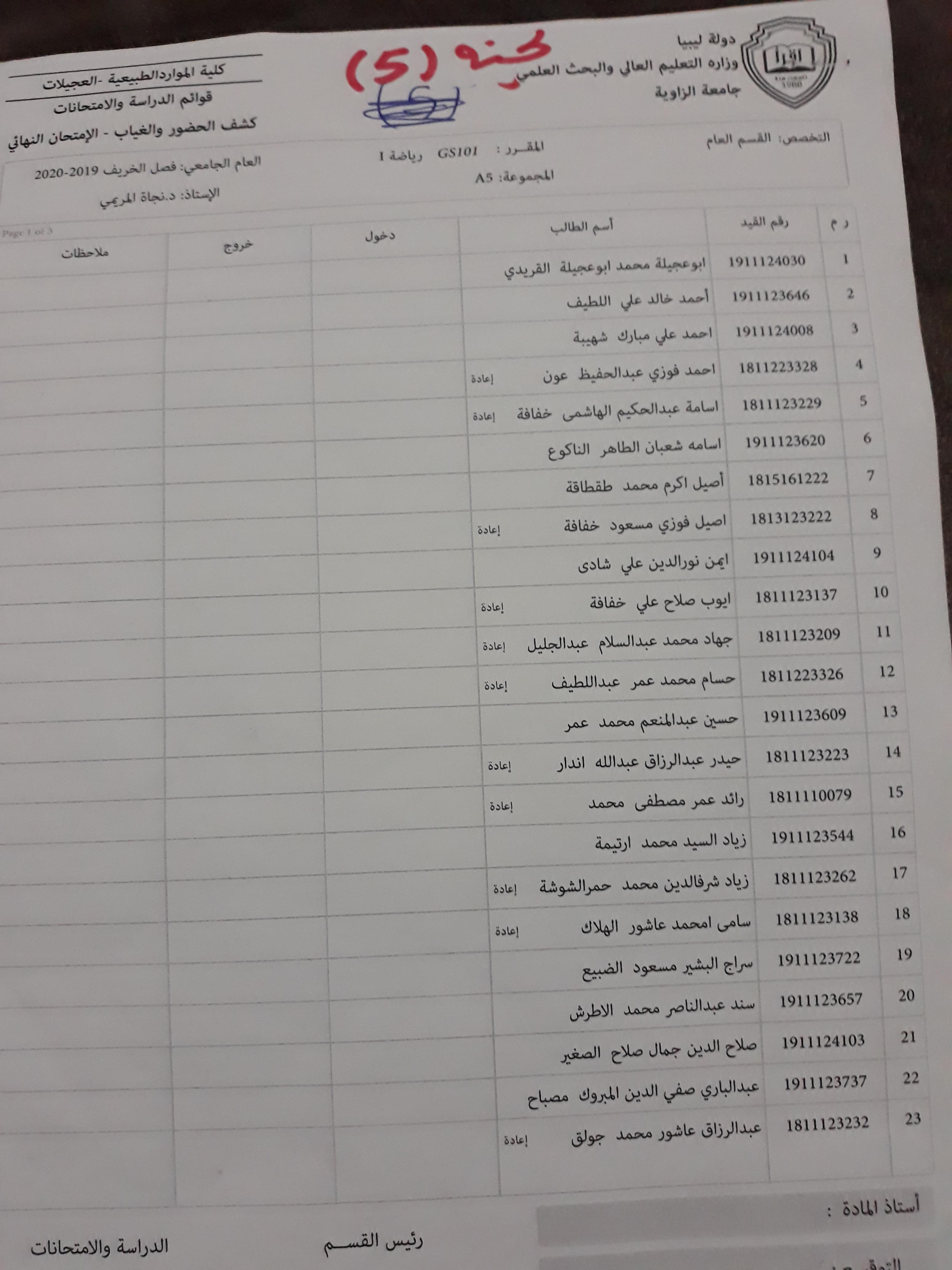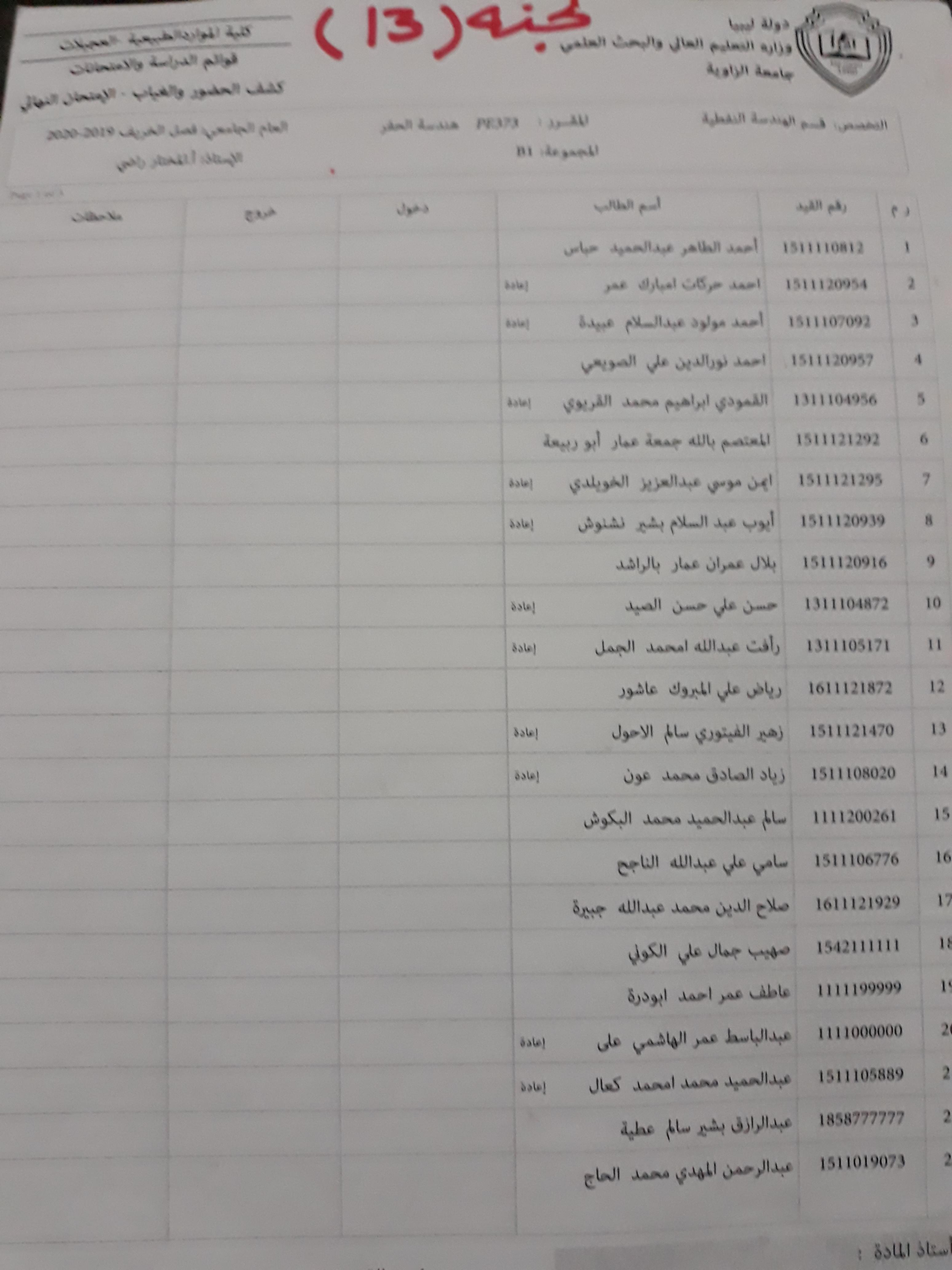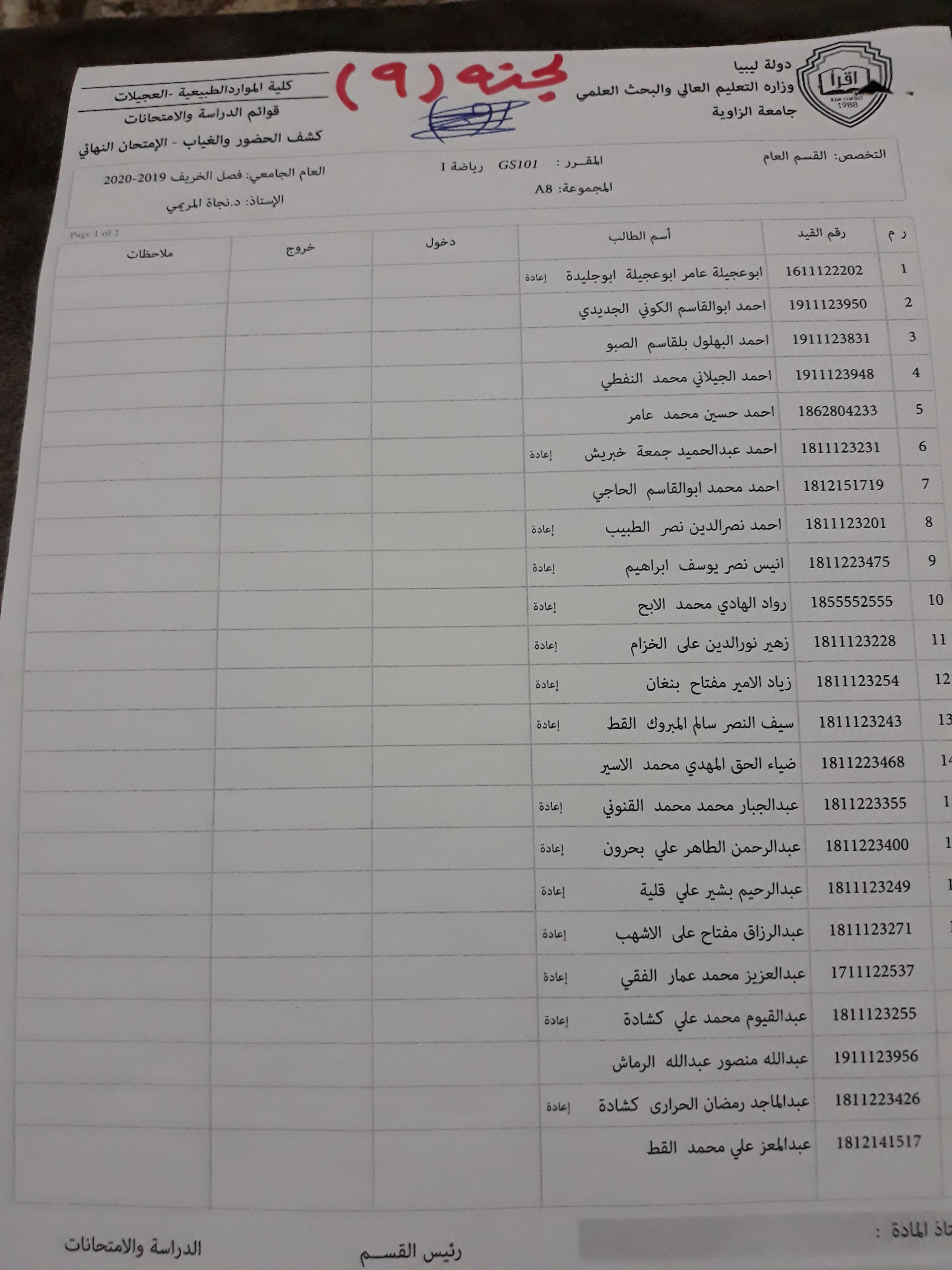 علي جميع الطلبة التقيد باللجان ولن يدخل اي طالب في لجنة غير موجود اسمه فيها