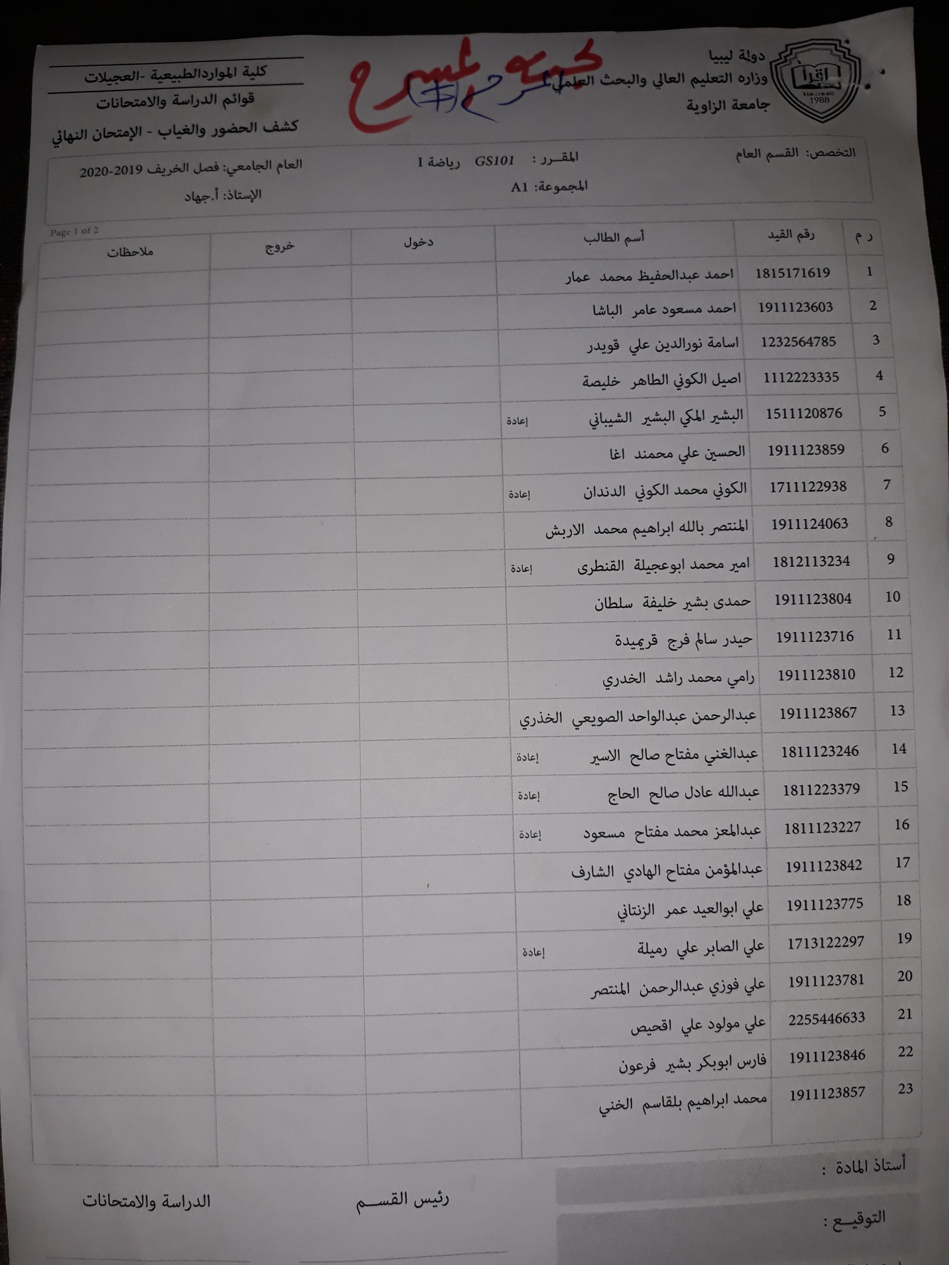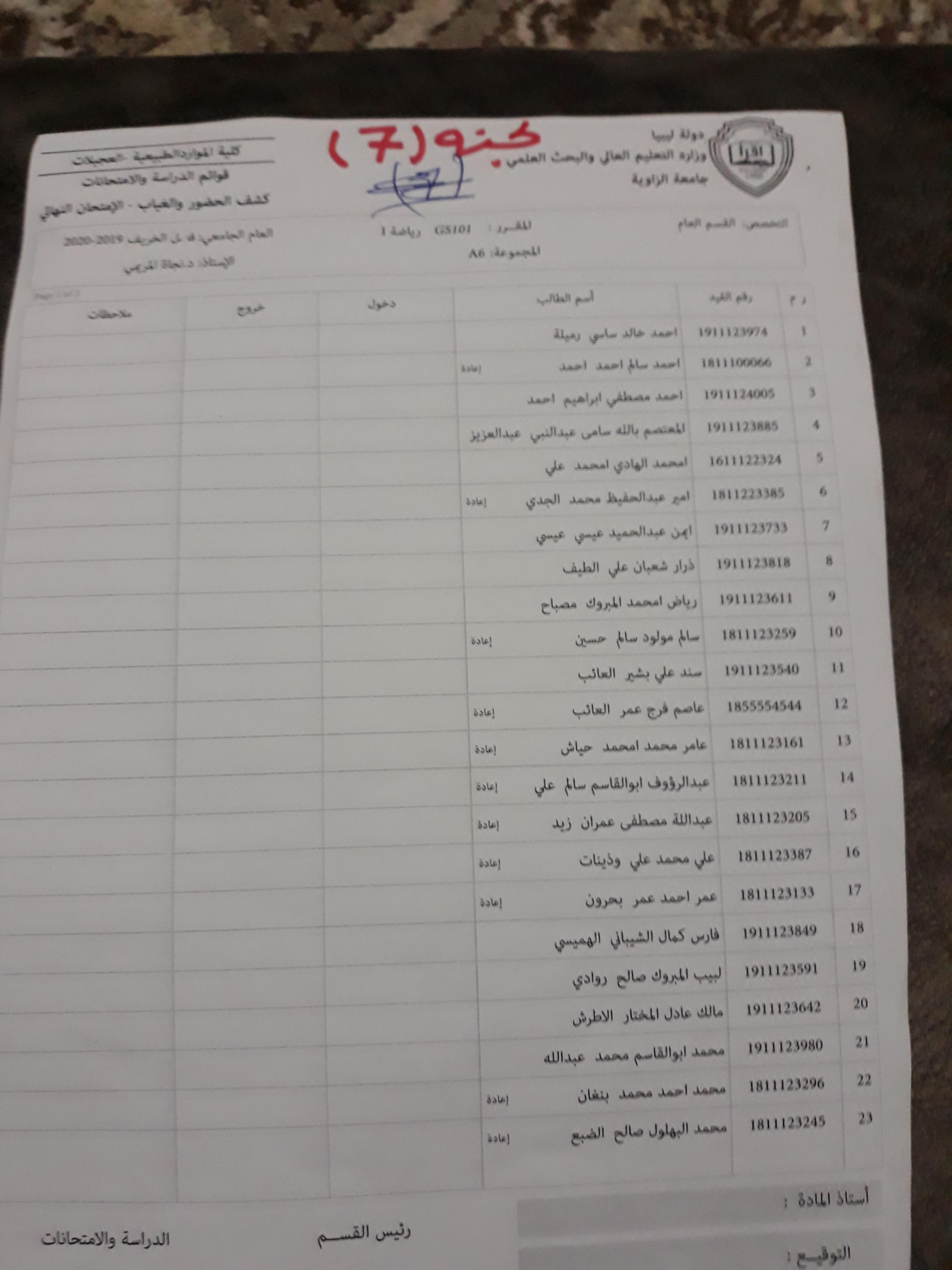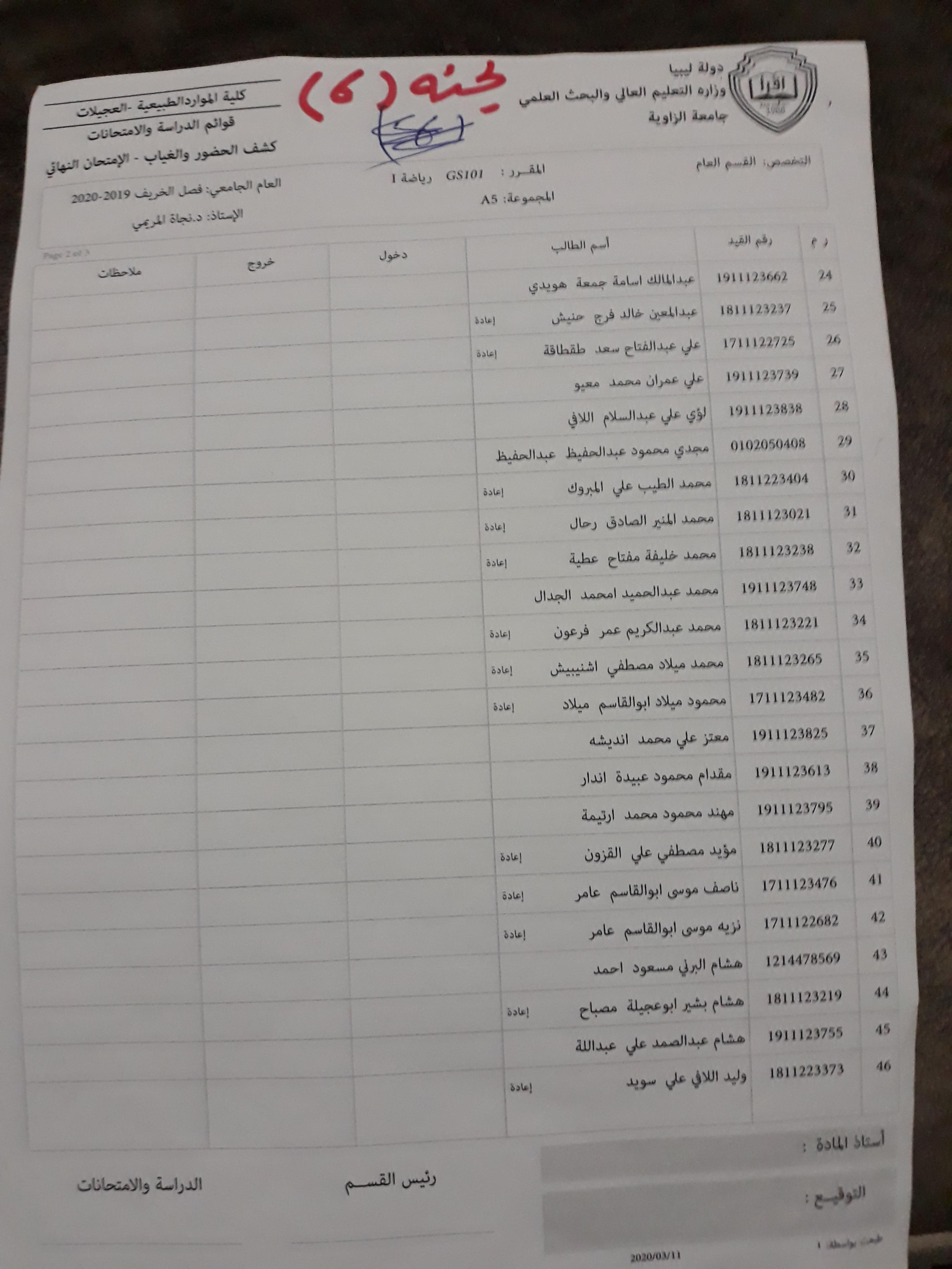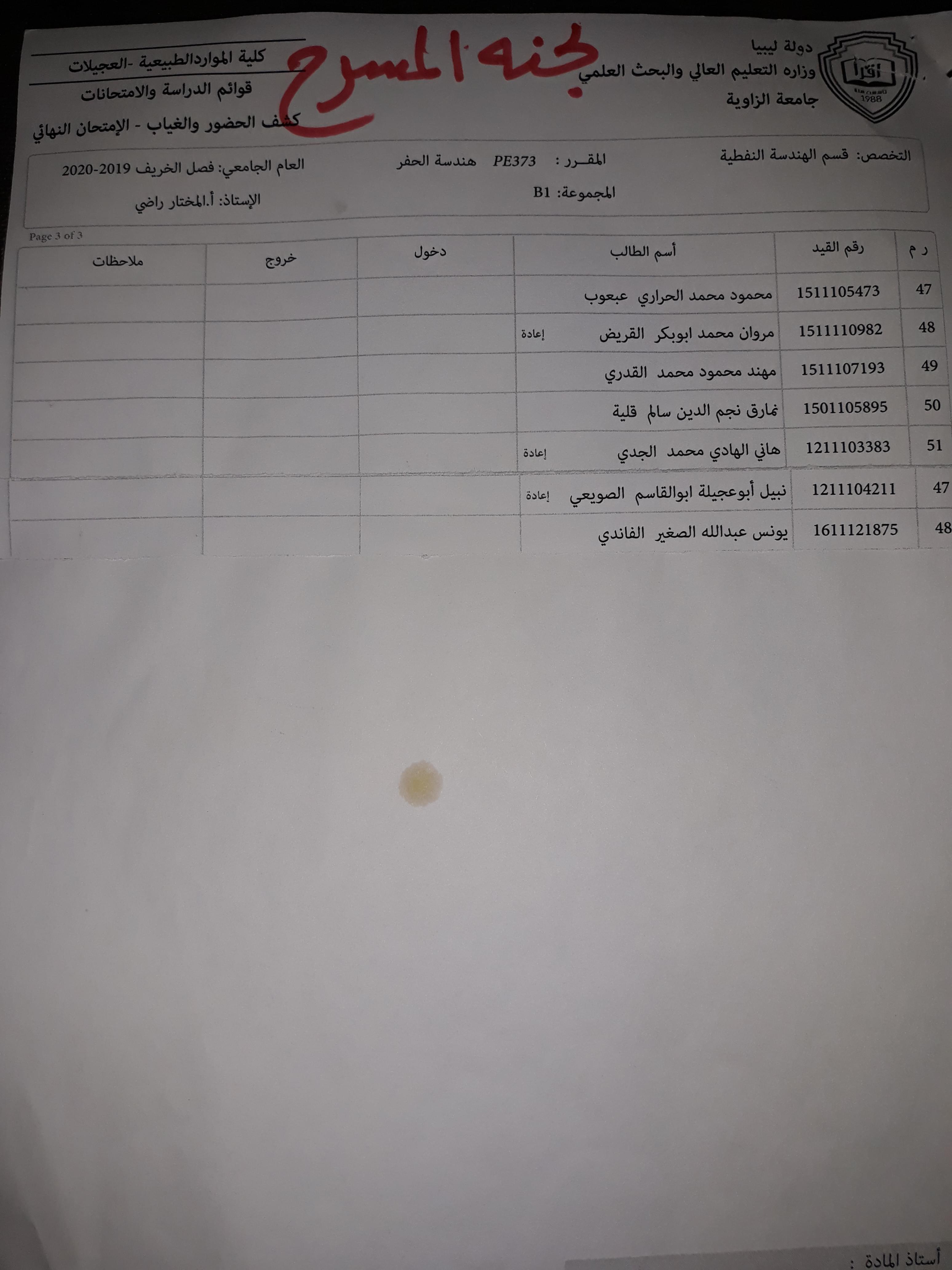 علي جميع الطلبة التقيد باللجان ولن يدخل اي طالب في لجنة غير موجود اسمه فيها