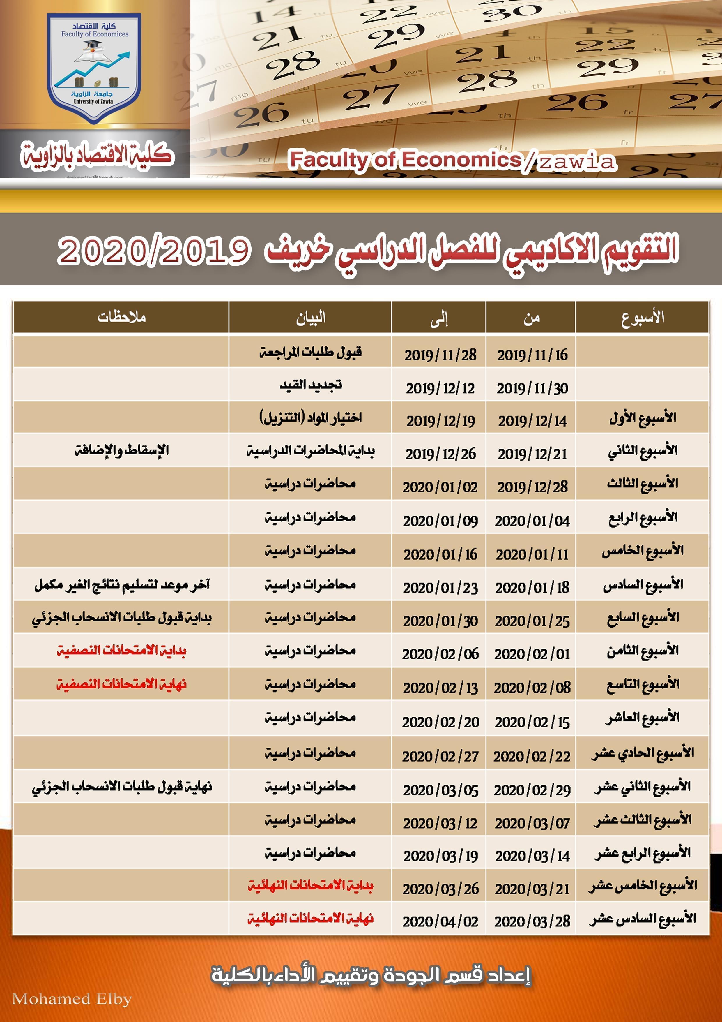 الحمد لله رب العالمين والصلاة والسلام على أشرف الأنبياء والمرسلين نبينا محمد وعلى آله وصحبه أجمعين ومن تبعهم بإحسان إلى يوم الدين. أما بعد، عزيزي الزائر أهلا بك في موقع كلية الاقتصاد هي إحدى كليات جامعة الزاوية والتي تضم ستة أقسام علمية تسعى إلى إعداد كفاءات متميزة بالعطاء والإبداع في مجالات العلوم الاقتصادية والإدارية وإثراء البحث العلمي المدعم ببرامج الدراسات العليا والإسهام في خدمة المجتمع وبناء شراكات مجتمعية متميزة مع الأخذ في الاعتبار بمنظومة الجودة وتحقيق الاعتماد الأكاديمي. إن الطالب هو محور العملية التعليمية، وإعداده لمواجهة الحياة وتحدياتها في الحاضر والمستقبل هو الهدف الأساسي الذي نسعى إليه وانطلاقا من ذلك تعمل الكلية على إعداد خريج مزود بالمعارف النظرية والخبرات العملية والسلوكيات الإيجابية، ولديه القدرة على توظيفها في بناء ذاته وتنمية مجتمعه وذلك من خلال تقديم تعليم عالي الجودة وتحسين مستوى الخدمات الأكاديمية المقدمة للطلاب، وتطوير البرامج الأكاديمية بما يتوافق مع حاجة سوق العمل. وتتميز كليتنا بأن لديها أعضاء هيئة تدريس ذوي كفاءة عالية يعملون بروح الفريق وأهم ما يميز هذا الفريق هو روح التناغم والمحبة والتعاون، يعملون بكل جد وتفان من أجل الارتقاء بمستوى التعليم الجامعي في بلادنا الحبيبة. ختاماً أدعو الله القدير أن يوفقنا لأداء مهمتنا على أكمل وجه وأن ينعم على بلادنا بالأمن والأمان والاستقرار ويحفظها من كل مكروه.