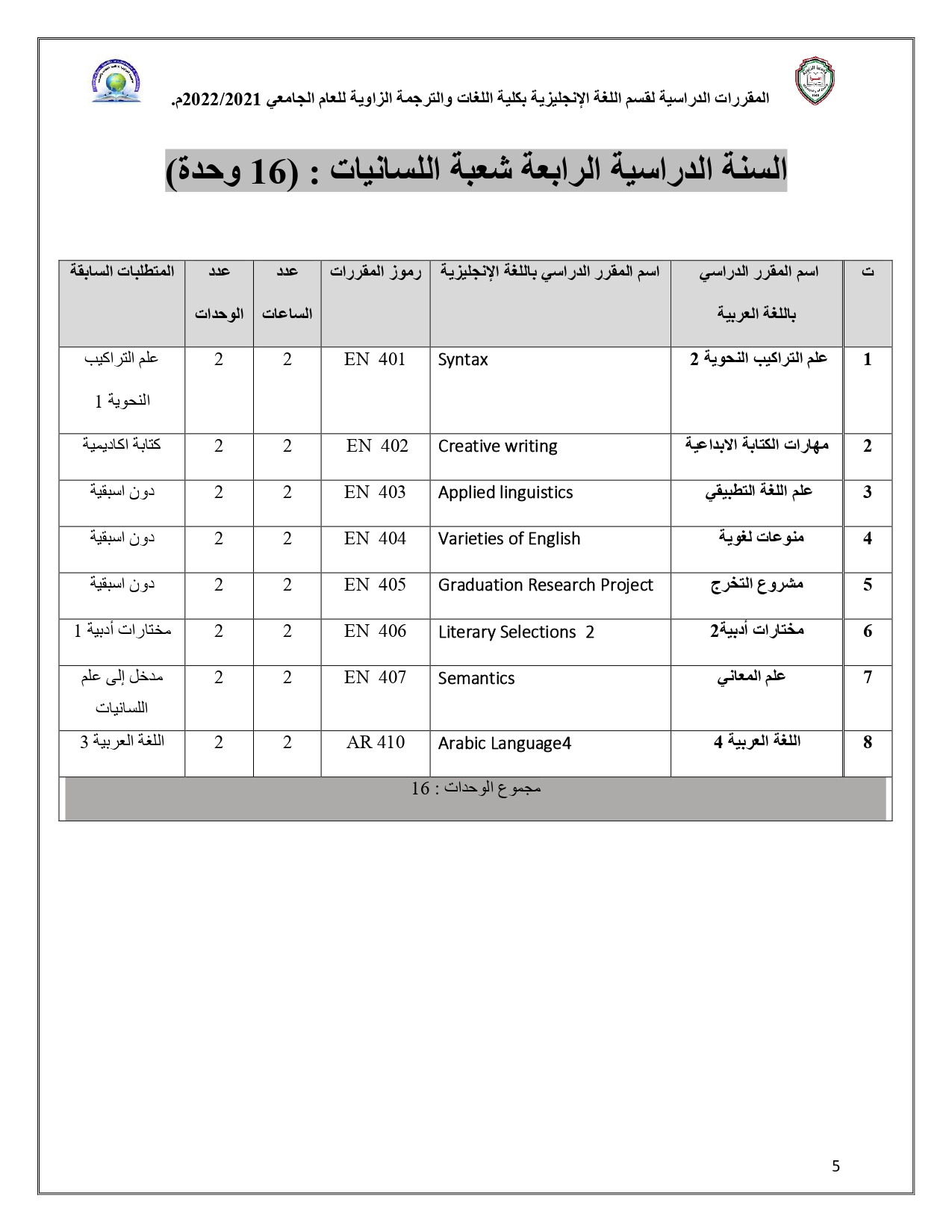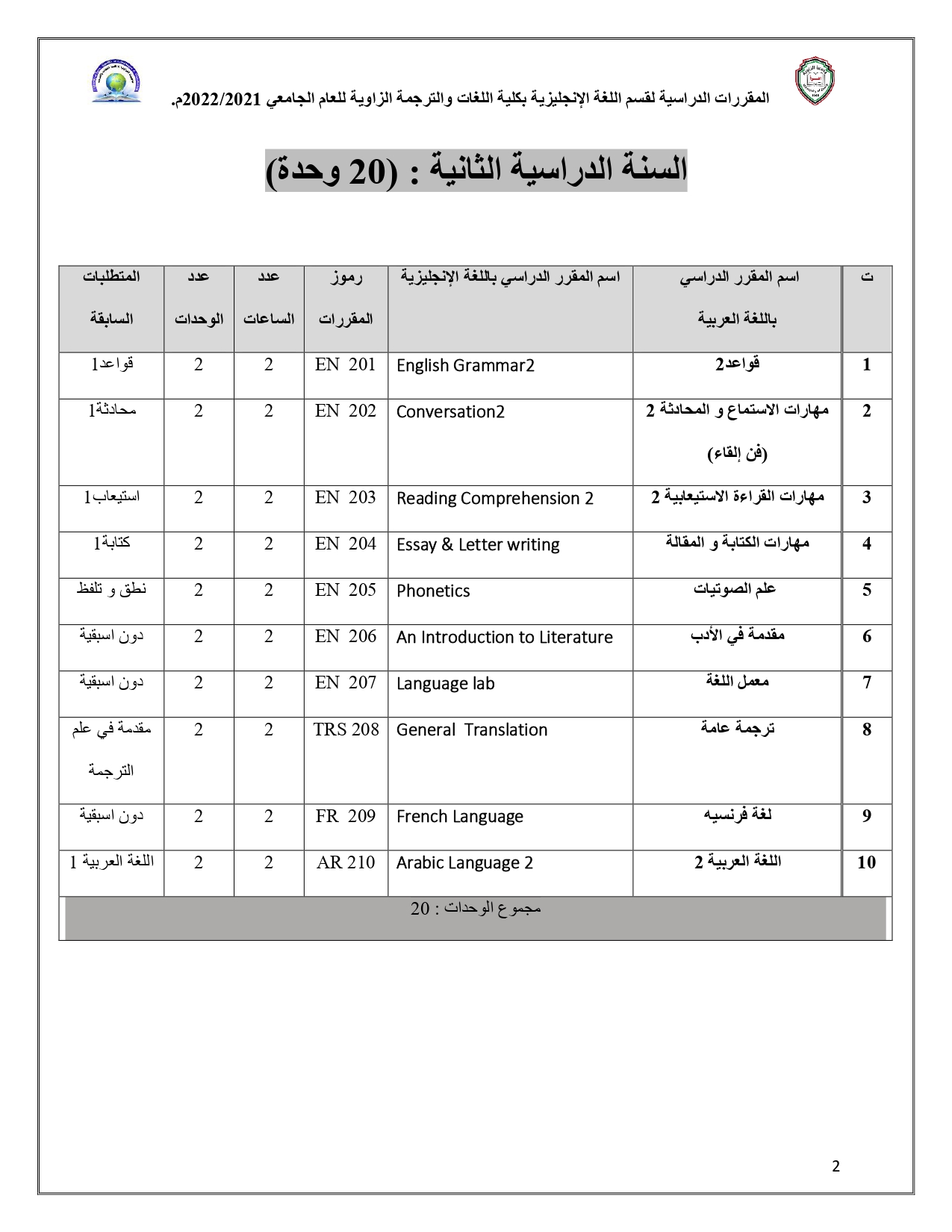 - تمكين الطلبة من تطوير معرفتهم باللغة الإنجليزية و اللغويات و الأدب الإنجليزي.