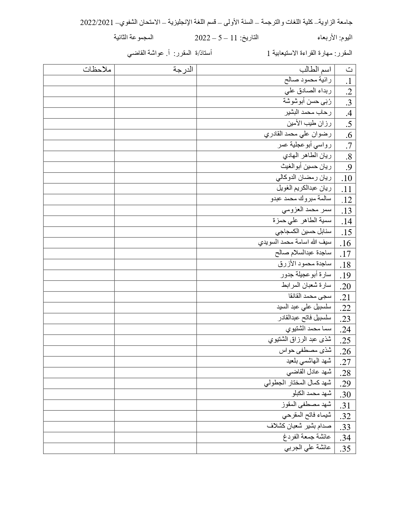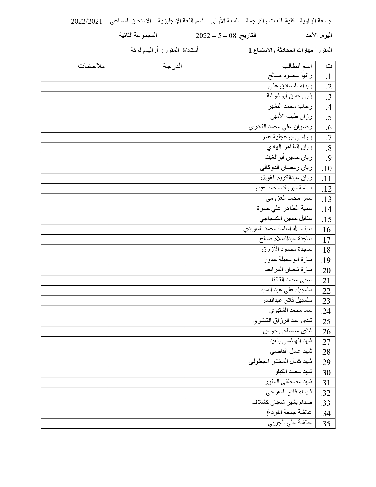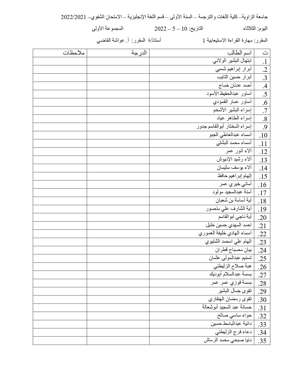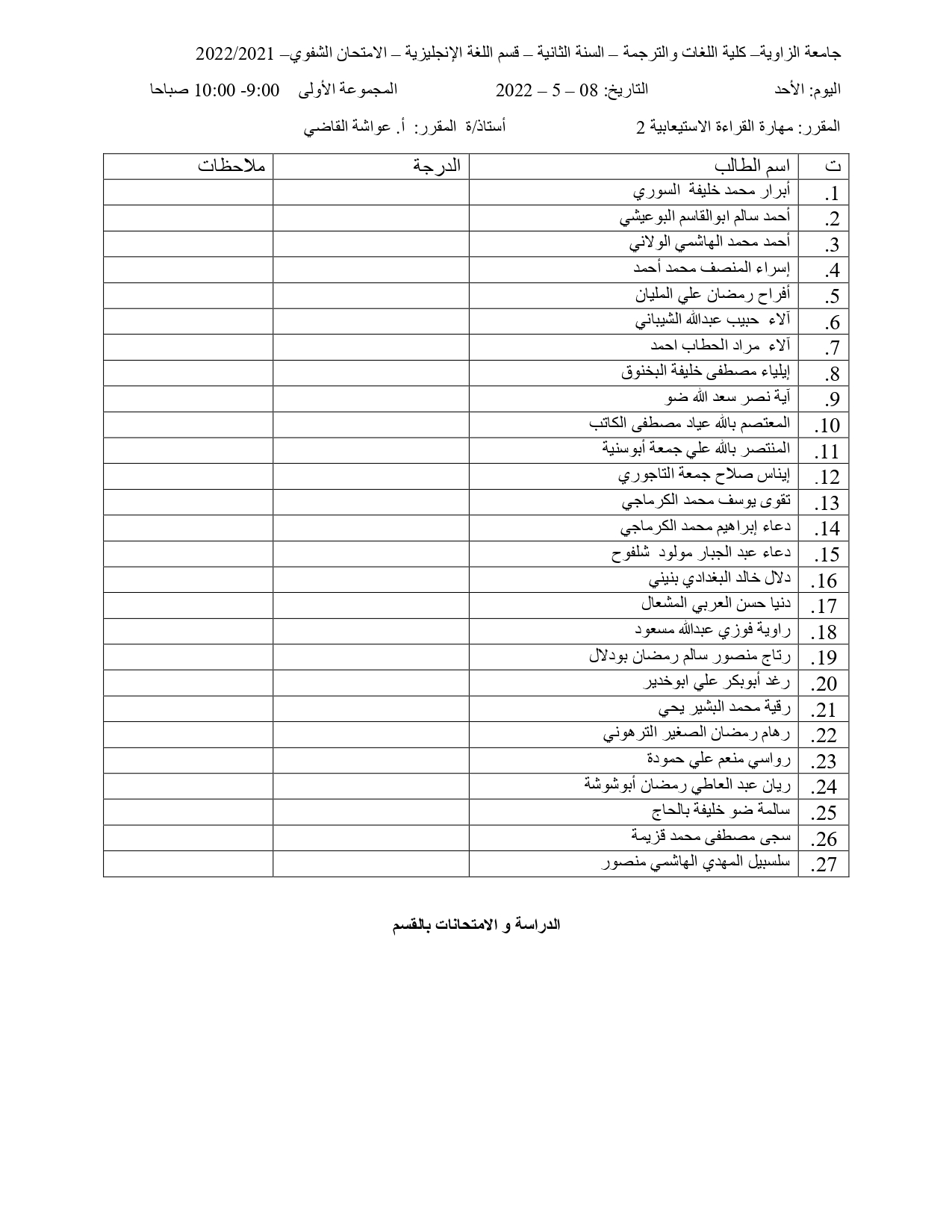 توزيع الطلبة في الامتحان الشفوي و السماعي
