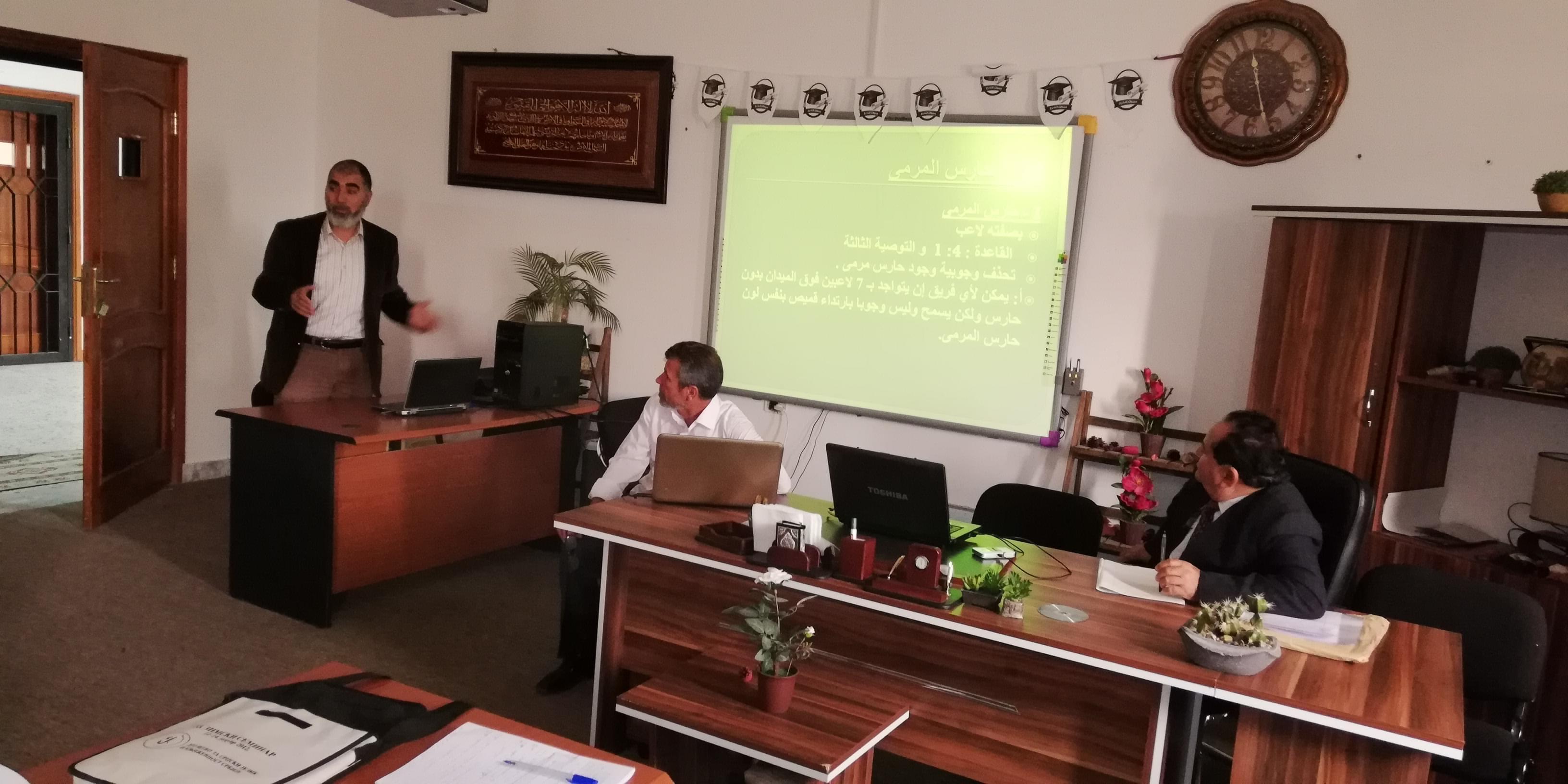 أُقيم اليوم بكلية التربية البدنية محاضرة علمية أشرف عليهل ونظمها قسم الألعاب بالتعاون مع مكتب الاستشارات العلمية بالكلية  حيث أوضح المحاضرين بهذه المحاضرة التغيير المستمر الحاصل بالألعاب الرياضية وأهم الألعاب المستحدثة بكرة القدم  وحضر هذه المحاضرة مجموعة من أعضاء هيئك التدريس بالكلية وللطلاب والدارسين بقسم الدراسات العليا. وتطرق الحاضرين لبعض النقاط المهمة في بعض التعديلات بقانون كرةاليد والقى هذ ه محاضرة أد. كمال الغول تخصص تدريب رياضي كرة القدم والدكتور حسن الجباني تخصص تدريب  كرة يد