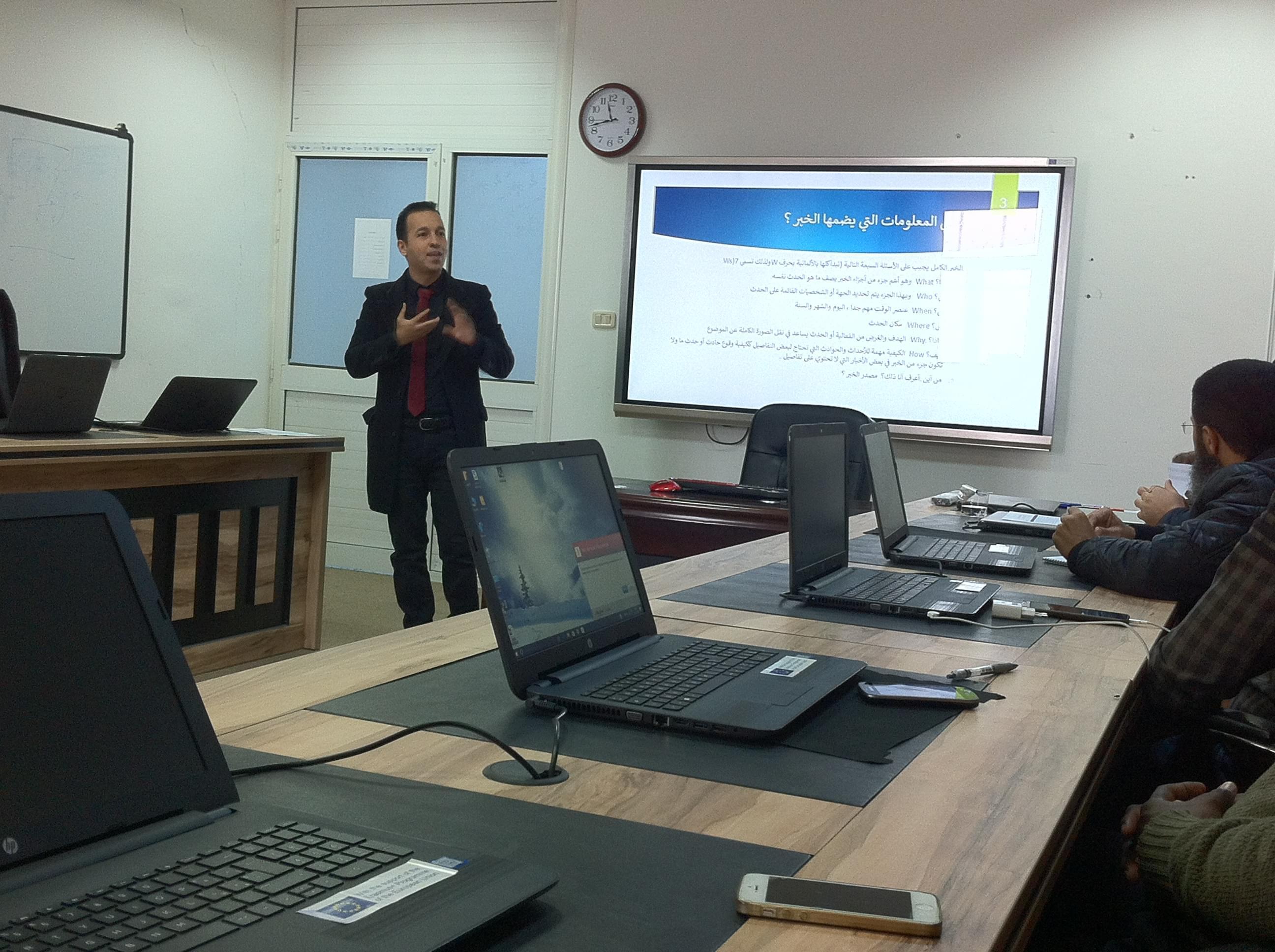 ثم تحدث الاستاذ رضا فحيل البوم عن كيفية صياغة الخبر وتنسيقه وتحريره .