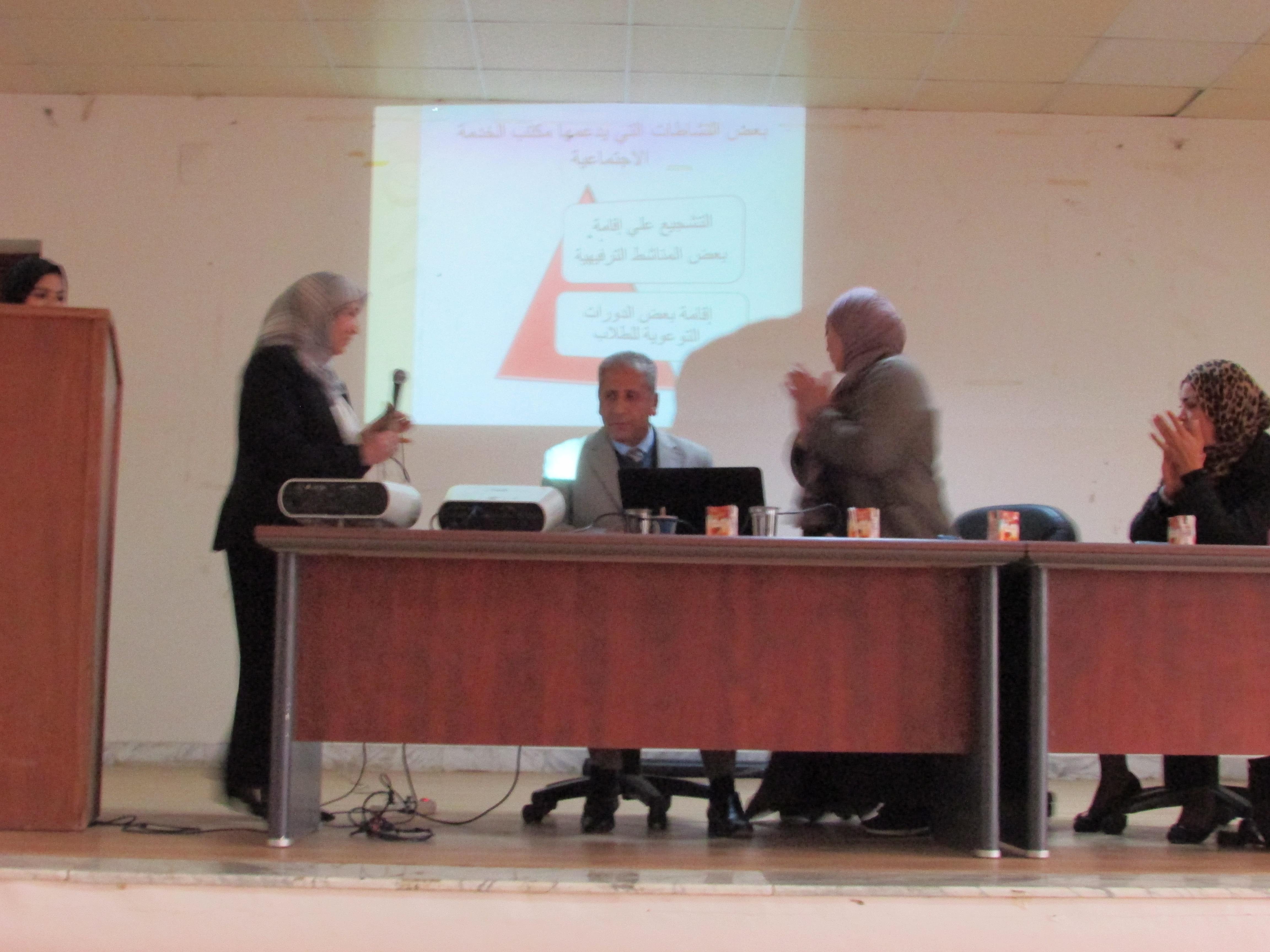 حيث أكد المشاركين في كلماتهم علي دور الجامعة و الكلية في بناء  البيئة التعليمية الملائمة للطالب و كيفية مواجهة المشاكل و الصعاب و تذليلها أمامه. و تخلل الملتقي كلمات من أعضاء هيئة التدريس بالكلية و التي أكدت علي دور الخدمة الاجتماعية في اعداد المعلم المثقف الذي يسهم في بناء مجتمعه بفاعلية و من بين هذه الكلمات كلمة عميد الكلية د. خيري حمزة , د. نور الدين شقلابو رئيس قسم علم الاجتماع بالكلية , أ. ابراهيم الرتيمي مدير مكتب الجودة بالكلية ,أ موفق مسعود مدير مكتب المعلومات و التوثيق و الموقع الالكتروني بالكلية .