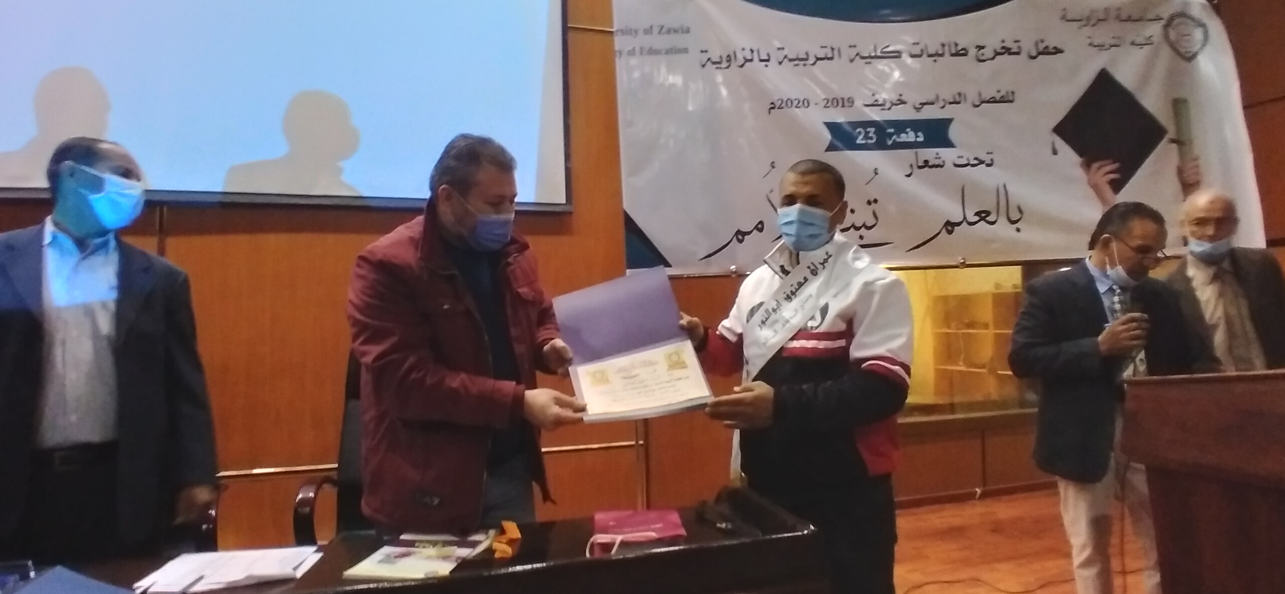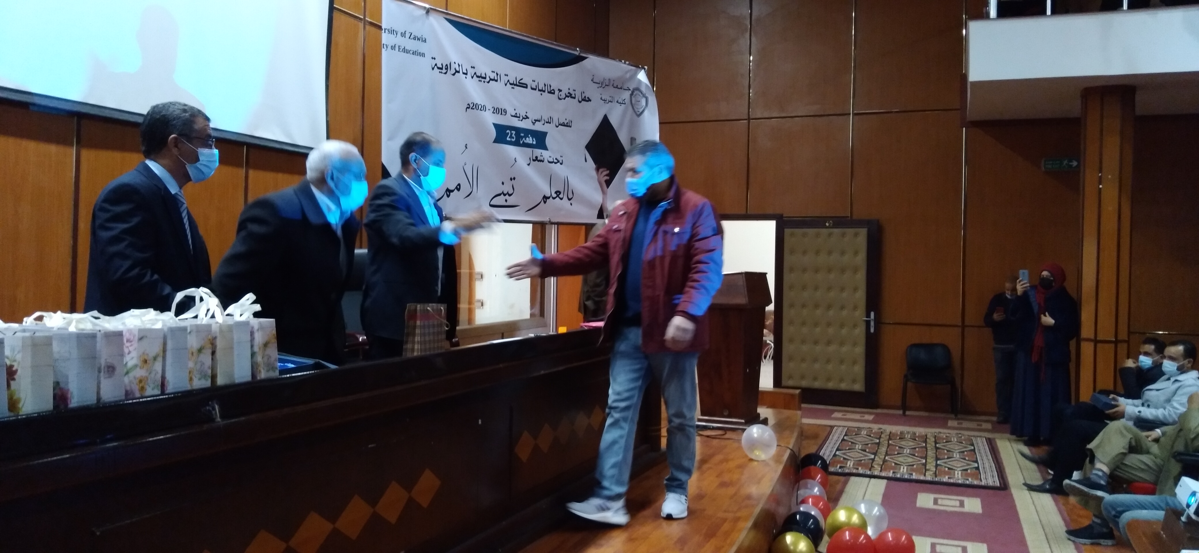 أقيم صباح اليوم الاحد الموافق 2021/1/31 إحتفالية تخرج طالبات الدفعة (23) من كلية التربية الزاوية. وقد حضر الاحتفال السيد الكاتب العام بالجامعة و السيد المسجل العام بالجامعة و مراقب التعليم بالزاوية و عدد من الشخصيات التي تمثل مختلف المكاتب بالجامعة و البلدية.