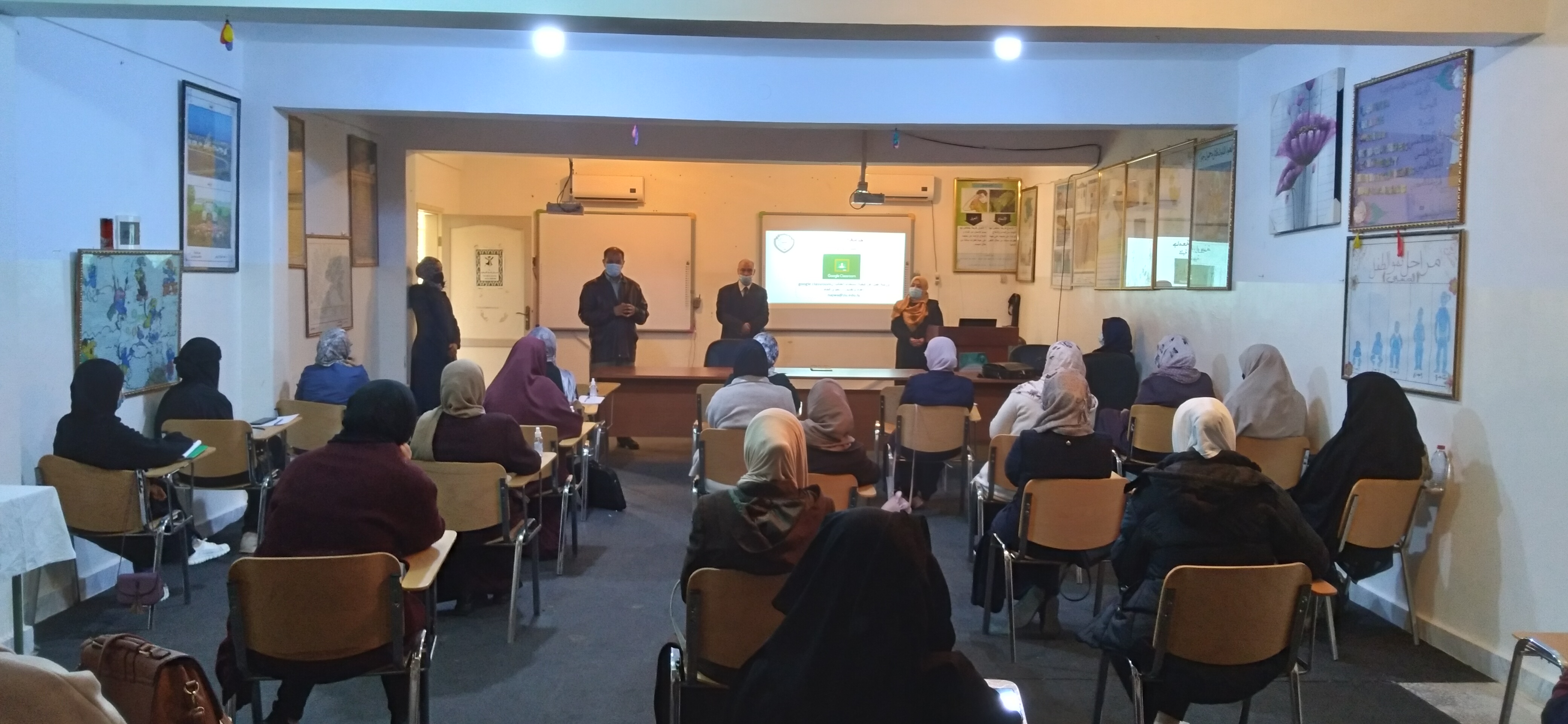 نظم قسم الفيزياء بكلية التربية الزاوية صباح اليوم الخميس الموافق 2021/2/11 ورشة عمل عن (تطبيق جوجل الفصل الافتراضي Google classroom وكيفية استخدامه والاستفادة منه في ادارة العملية التعليمية ) بقاعة التدريب بالكلية.