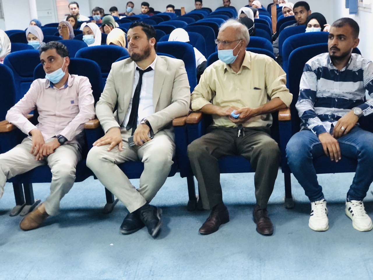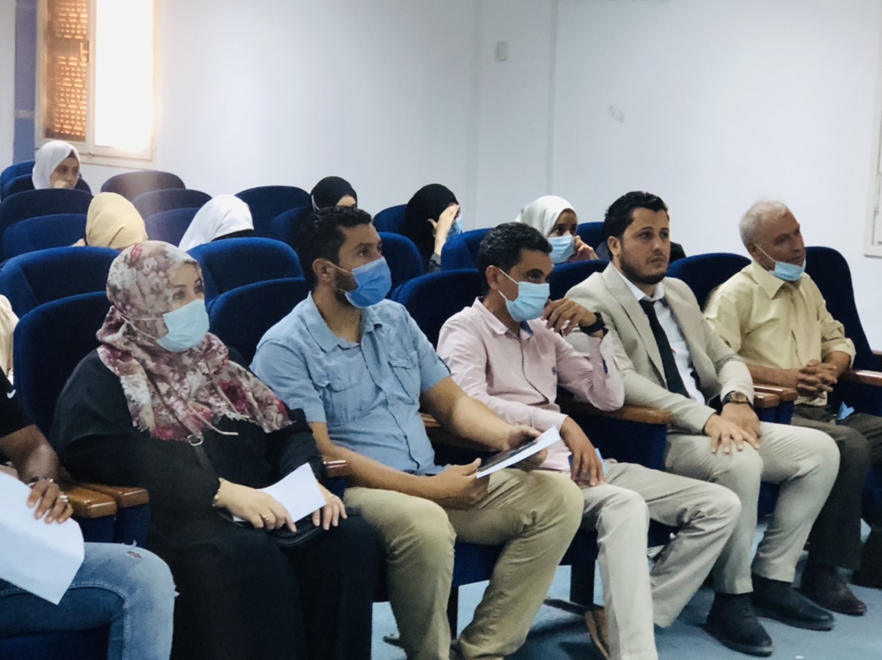 وذلك في حضور كلاً من عميد الكلية د. محمد رحومة وأعضاء هيئة التدريس د. صبحية شقلابو ، د. علي ميلاد ،د نجاة منصور ، د. إيهاب المقرحي وبحضور ضيوف من خارج الكلية أ. محمد مصطفى رئيس الإتحاد العام لطلبة جامعة الزاوية ود. إبراهيم التومي ود. حسن البرناوي مسجل كلية التربية الزاوية