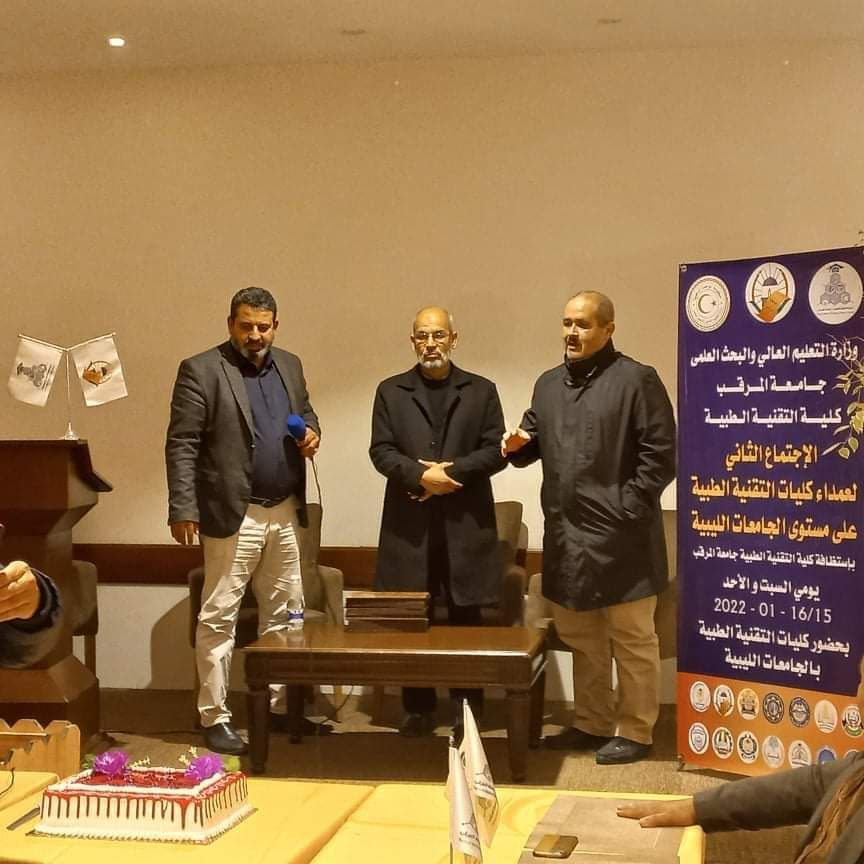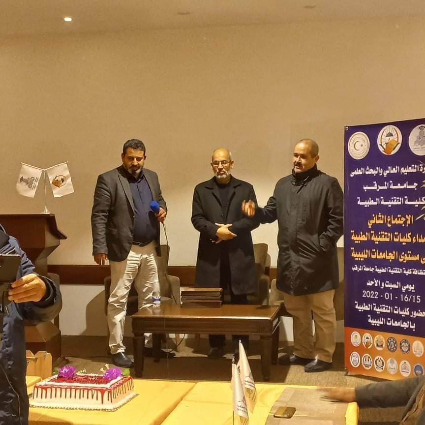 اختتمت أعمال الإجتماع الثاني لكليات التقنية الطبية بالجامعات الليبية بمدينة الخمس بحضور السيد عميد كلية التقنية الطبية جامعة الزاوية رئيس لجنة كليات التقنية الطبية بالجامعات الليبية والسيد وكيل الشؤون العلمية بجامعة المرقب وعمداء كليات التقنية الطبية بالجامعات الليبية وعددهم 14 عشرة كلية ، حيث اتفق الحضور على عدة نقاط من شأنها تعزيز كفاءة الكليات وتذليل الصعاب والعوائق التي تواجه سير العملية التعليمية بها .