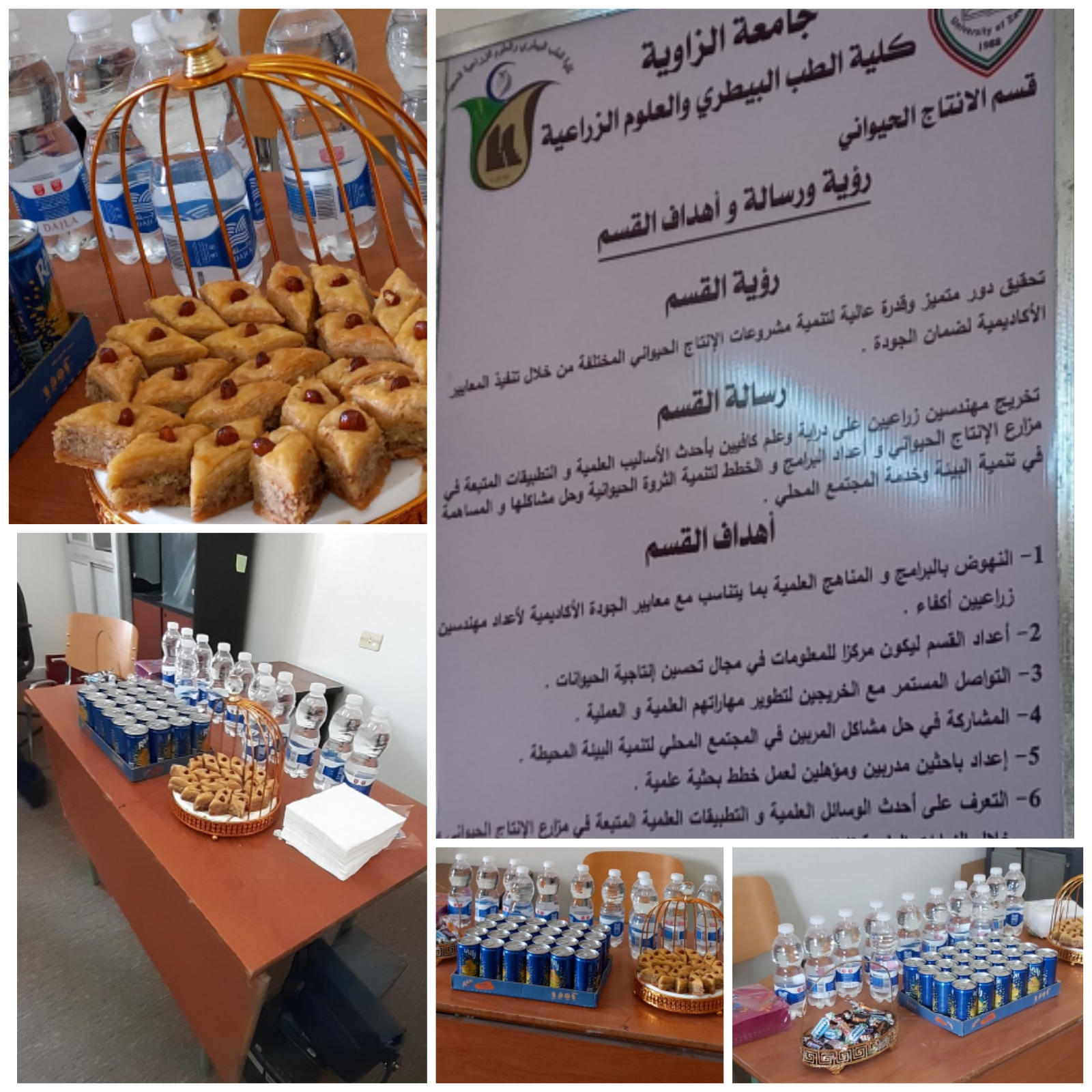 اقام قسم الإنتاج الحيواني برئاسة السيد رئيس القسم الدكتور عبدالحكيم العر وبمناسبة إختتام الإمتحانات النهائية لهذا الفصل ؛ حفل تكريم لأعضاء اللجنة العليا للإمتحانات بكلية الطب البيطري و العلوم الزراعية و ذلك لجهودهم التي بُذلت في سبيل سير عملية الإمتحانات في أحسن الظروف.
