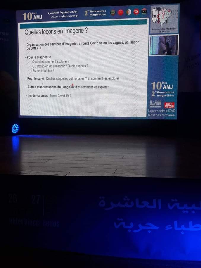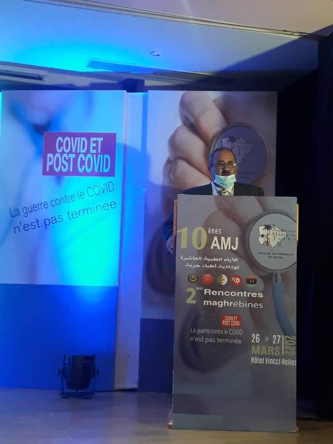 بمجهودات ذاتية الفريق البحثي لعلوم الطب الحيوي بجامعة الزاوية ممثلا في السادة د. الطيب العزومي عميد كلية التقنية الطبية ورئيس الفريق و د. عبدالكريم البشتي عميد كلية التمريض وعضوء الفريق البحثي و د. عبدالله الرماح رئيس قسم الدراسة والامتحانات بكلية التقنية الطبية وعضوء الفريق البحثي يمثلون ليبيا ويشاركون في اللقاء الطبي المغاربي الثاني والايام الطبية العاشرة لودادية أطباء جربة تحت شعار ( الكوفيد 19 وما بعد الكوفيد 19).